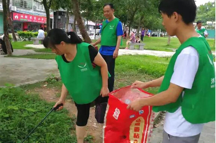 与此同时,另一组义工沿黄麻埔社区公园周边地毯式捡拾垃圾,过程中也不忘向路遇市民宣传“生态环保、沐恩践行,垃圾不落地、深圳更美丽”的环保理念,以此提醒公园内的市民保护环境。