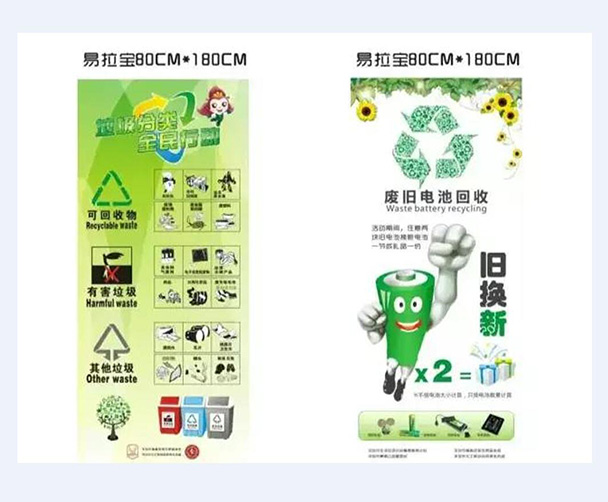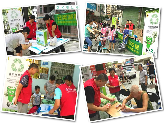 宣传海报上清楚列举了深圳现行三种垃圾分类,方便活动宣传过程中给村民讲解垃圾分类要点。针对废旧电池的污染问题,活动以废旧电池以旧换新或换领围裙、环保袋、牙刷、水杯、折扇等小礼品的形式鼓励村民参与,从而引起大家对有害垃圾污染环境的关注,意识到垃圾分类减量的重要性和迫切性。