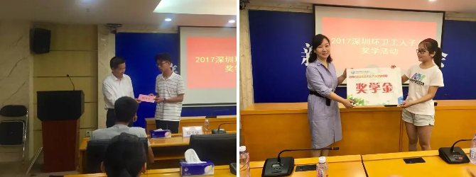 分享环节结束后,2017年新生代表分别上台发言,讲述他们对步入人生新一阶段的期待,并接受了美丽深圳公益基金会发放的奖学金,及市城管局精心准备的购书卡。