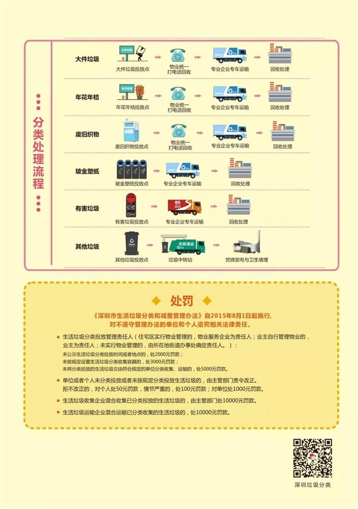 2017年6月3日深圳首发了全国第一份生活垃圾分类投放指引;10月底前,由政府出资,实现了有物业管理住宅区(城中村)垃圾分类设施配置全覆盖,共计3478个,这两步为深圳推行强制分类提供了坚实的基础保障。