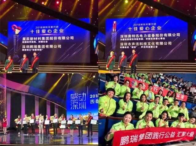 基金会理事长单位、深圳鹏瑞集团有限公司,副理事长单位、深圳奥特迅电力设备股份有限公司从103家爱心企业中脱颖而出,荣获“十佳爱心企业”称号