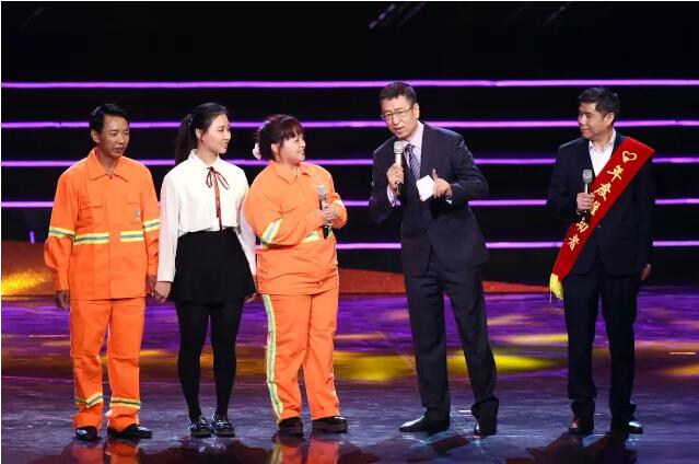 受助环卫工人代表包泽容一家来到晚会现场。包泽容是深圳唯一的机扫车女司机,从事环卫工作20年以上。爱笑的包泽容说:“我觉得自己的工作很有意义,以前在一线清扫,后来自学开车,成了深圳唯一的机扫车女司机,工作和生活都越来越好,没有理由不笑。”在白岩松的鼓励下,她还羞涩地唱起了“你是谁,为了谁……”更让人看到了环卫工的淳朴与真情。