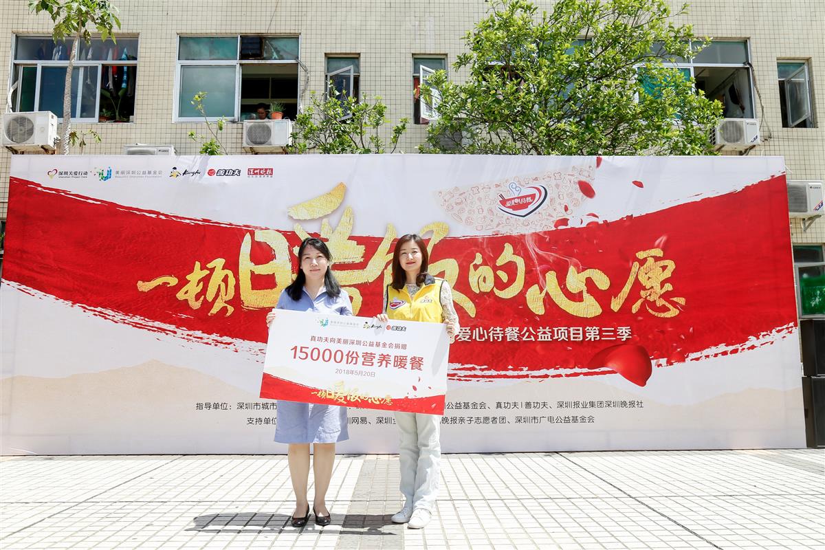 5月20日,由深圳市城市管理局指导,深圳市关爱办、美丽深圳公益基金会、真功夫|善功夫、深圳报业集团深圳晚报社联合举办的“爱心待餐公益项目”在南山区环卫工人宿舍正式启动。深圳全城各区集结了近千名志愿者,带着全城善意,分为12条线为环卫工人送餐,表达“520”的暖心关爱。