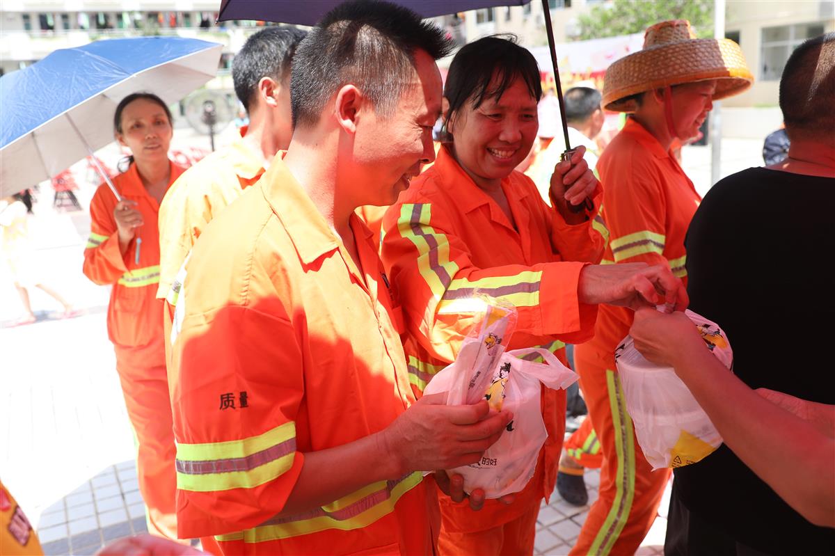 当天,在“爱心待餐”启动仪式现场,爱心企业共济科技为环卫工人准备了鲜花,出席活动的环卫工人被一支支艳丽的黄色玫瑰、一箱箱新鲜出炉的暖饭套餐和美丽深圳文明大使的暖心关爱所包围。为了给环卫工人们制造惊喜,活动特邀的动漫形象暖饭大使——熊大熊二光头强,还献上了精彩有趣的互动表演。新一批“暖饭派送大使”:深圳晚报、一体投资、华强物业、玉禾田、洁亚环保、玉清泉、绿景(中国)、鹏瑞集团、深圳通鹏淘、熊出没等爱心企业在启动仪式现场正式亮相,真功夫率先为项目捐赠价值30万元的1.5万份营养暖餐,暖餐将以餐券的形式由市城管局和美丽深圳公益基金会按比例发放给各区的环卫工人。随后主办方还走入环卫工人家庭,近距离与环卫工人进行沟通。鲜花、热饭还有温情的问候,是全城对环卫工人们的“520”表白。
