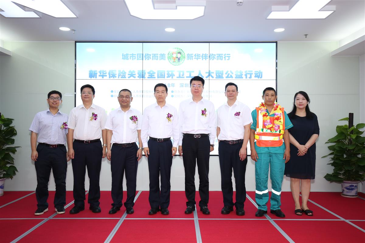 市城管局副巡视员杨雷、市金融办巡视员肖志家、新华人寿保险总监杨怀鹏、美丽深圳公益基金会秘书长张晓玮、中国保监会深圳监管局寿险处詹萌、深圳保险消费者权益服务中心副理事长文宝飞、新华人寿保险深圳分公司党支部书记胡文斌以及各相关部门的领导出席捐赠仪式。