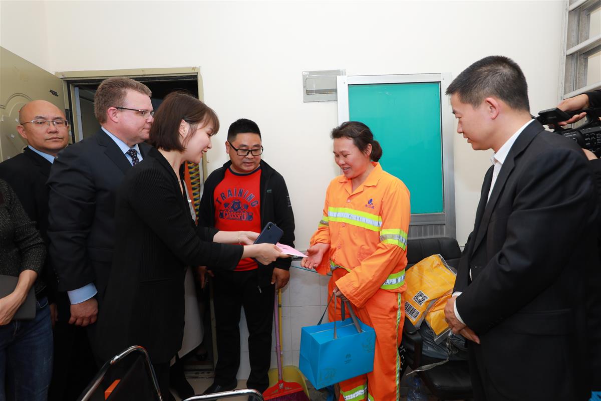 当天下午,市城管和综合执法局副局长杨雷,南山区城管和综合执法局副局长杨柱,美丽深圳公益基金会理事、秘书长张晓玮,鹏瑞启航公益基金会副理事长谷芳、秘书长蒙晓明,深圳鹏瑞莱佛士酒店总经理Jens Corder等一行走访慰问南山区两位特困环卫工人代表,给他们送去温暖问候和新春祝福。据了解,此次慰问的两位环卫工人代表在岗位上勤劳工作、不辞辛苦、无怨无悔,默默为美丽城市贡献一份力量。