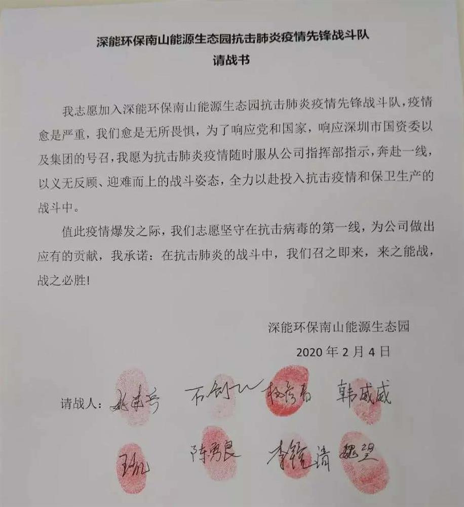 一纸请战书,南山能源生态园在深全部党员奋勇而来。他们迅速成立先锋战斗队,放弃假期和家人团聚的时间,戴上口罩,穿上防护服,奔赴生产第一线。疫情愈是严重,他们愈是无所畏惧,以义无反顾、迎难而上的战斗姿态,全力以赴投入抗击疫情和保卫生产的战斗中。他们承诺:在抗击肺炎的战斗中,召之即来,来之能战,战之必胜!
