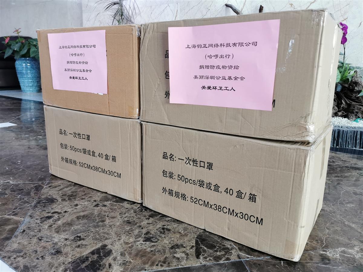 上海钧正网络科技有限公司(哈啰出行)向美丽深圳公益基金会捐赠8000只一次性医用口罩,