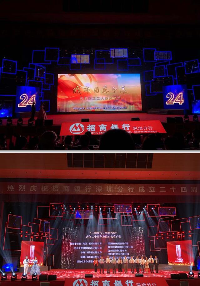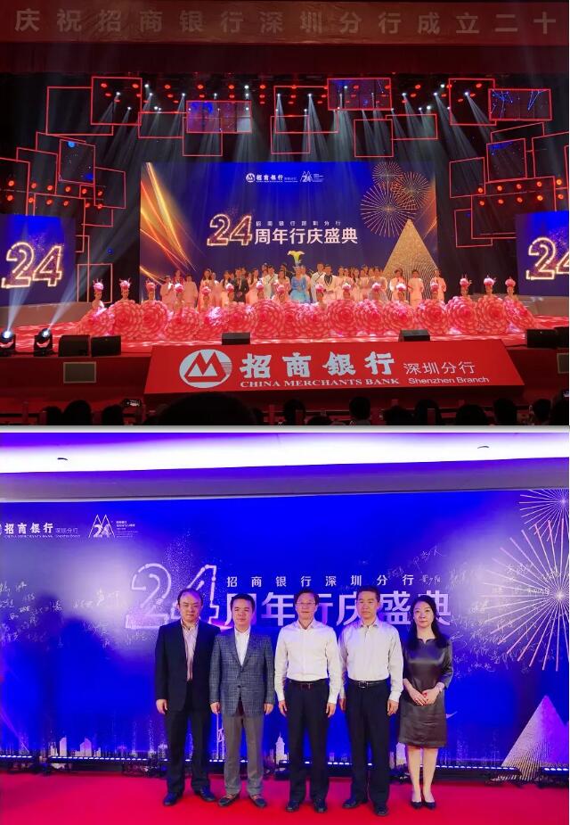 11月11日上午,招商银行深圳分行24周年行庆庆典在市民中心礼堂隆重举行,深圳市城管局局长王国宾、副巡视员杨雷、招商银行深圳分行行长岳鹰、美丽深圳公益基金会秘书长张晓玮出席了活动。