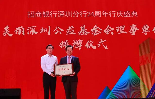 市城管局局长王国宾为招商银行深圳分行授予美丽深圳公益基金会理事单位牌匾,招商银行深圳分行希望通过加入美丽深圳公益基金会大家庭,共同引导和凝聚更多的市民、企业及社会各方力量,积极参与城市管理,热心推动和参与关爱环卫工人活动,弘扬慈善精神,增强公众慈善意识。