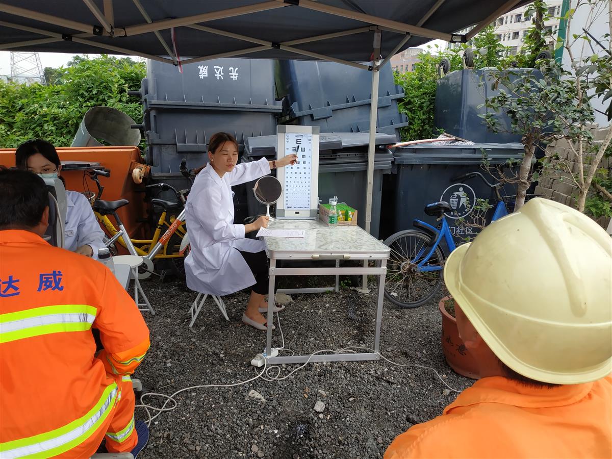 视力检查、眼压检查、裂隙灯检查以及眼健康咨询服务等。由于环卫工人工作的特殊性,长期在马路上作业,且作业现场灰尘较大,紫外线强,容易引发翼状胬肉、白内障等眼部疾病。因此,希望通过活动让更多的环卫工人关注自身眼健康、了解更多眼健康常识,使各种眼病能够早预防、早发现、早治疗。