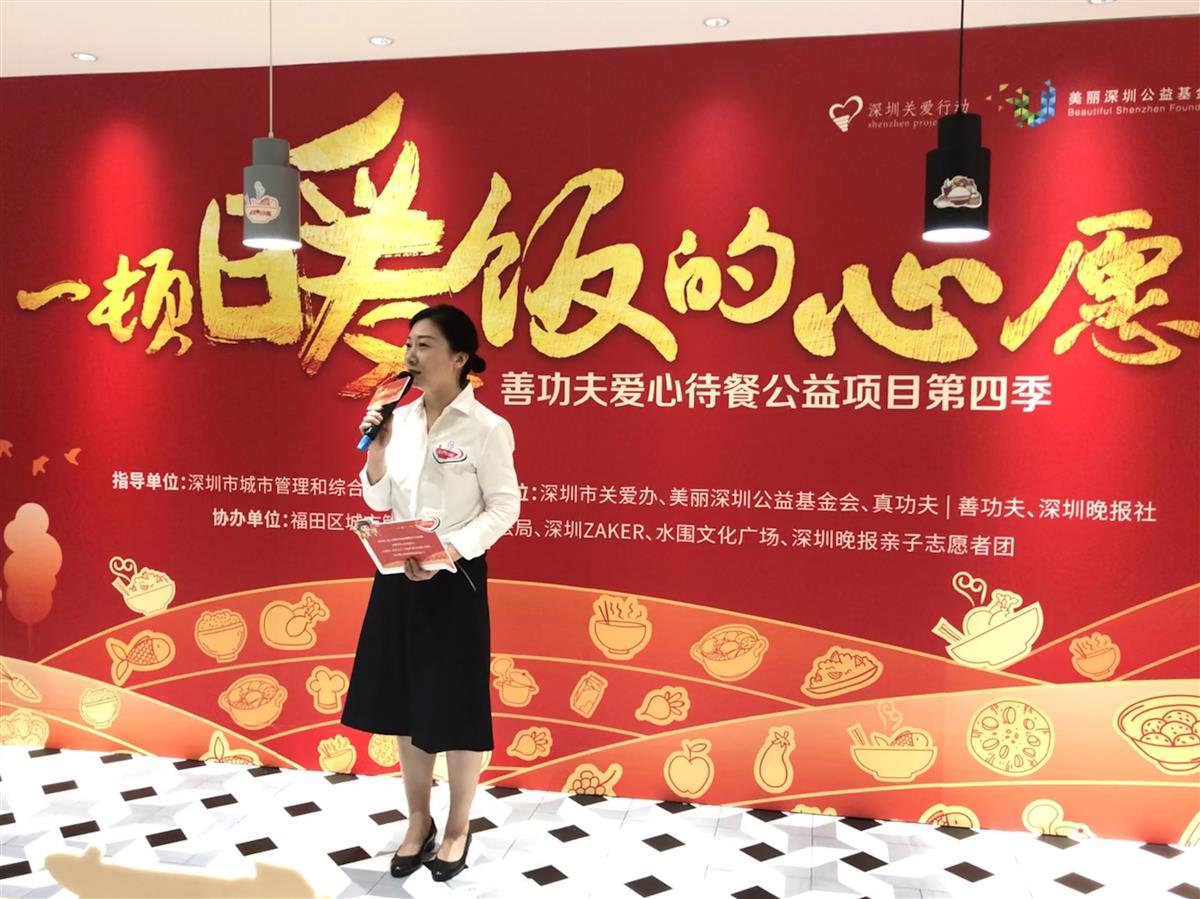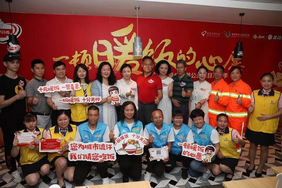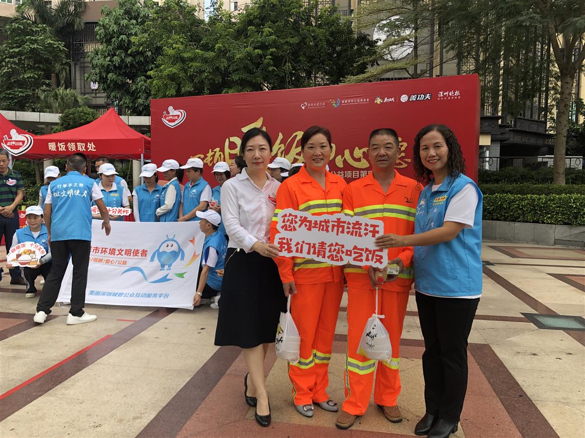 5月19日,由深圳市城市管理和综合执法局指导,深圳市关爱办、美丽深圳公益基金会、真功夫|善功夫、深圳报业集团深圳晚报社联合主办的第三季“爱心待餐”项目启动仪式在深圳市福田区真功夫福民店举行。同时,活动设置了了分会场,全市 8 区分为 12 条线路由亲子志愿者团为环卫工人送餐并举行相应的关爱活动。