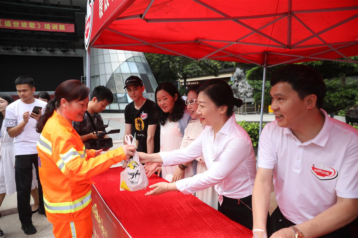 随后,参与启动仪式的嘉宾们一起动手在真功夫门店打包暖餐,并步行前往水围文化广场,一一送到环卫工人们手中,在“520”这个甜蜜又温馨的日子到来之际,用行动无声地表达满满的爱意与敬意。