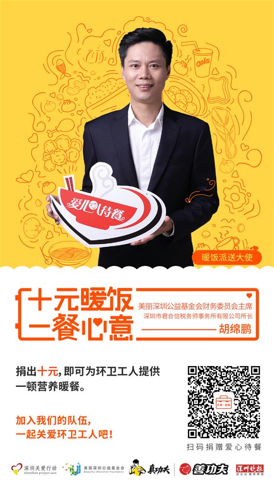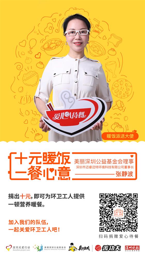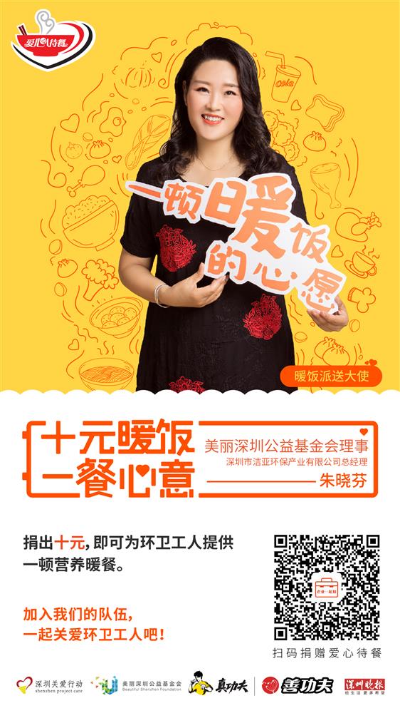 作为项目发起方之一,真功夫率先捐赠出15000份营养暖餐,暖餐将以餐券的形式由市城市管理和综合执法局、美丽深圳公益基金会按比例发放给各区的环卫工人。美丽深圳公益基金会秘书长张晓玮向热心参与项目的爱心企业、美丽深圳文明大使、志愿者、爱心人士们表示真挚的感谢。今年,基金会将持续开展“关爱环卫工人”系列活动,为环卫工人提供紧急救助、特困帮扶,对其子女实施助学奖励。在这里,也欢迎社会各界的踊跃参与,共同打造关心关爱环卫工人的良好氛围。