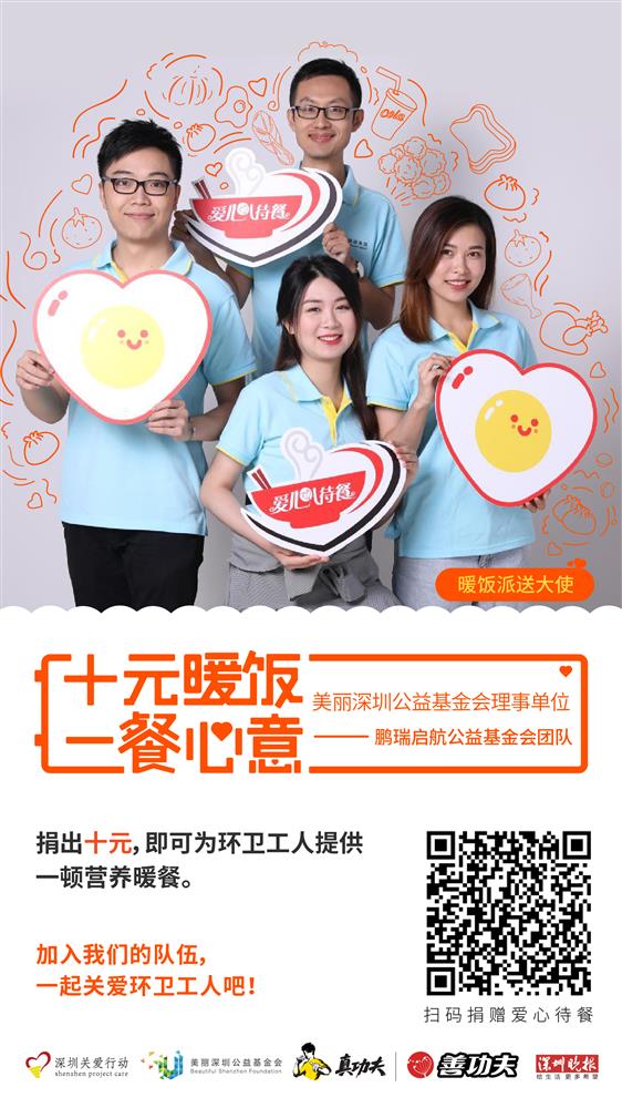 此外,美丽深圳公益基金会还在腾讯公益平台上线发起“一顿暖饭的心愿”筹款项目,基金会理事单位、爱心机构、美丽深圳文明大使等纷纷发起一起捐,分别组建各自的筹款分队,并发动身边朋友加入关爱环卫工人的队伍。同时,真功夫全国 600 多家直营门店开展随手捐赠活动。据悉,此次所筹善款,将全数用于深圳环卫工人的爱心待餐项目。在 5-10 月期间,主办方还将开展暑期环卫工人亲子游活动、环卫工人节主题活动等。