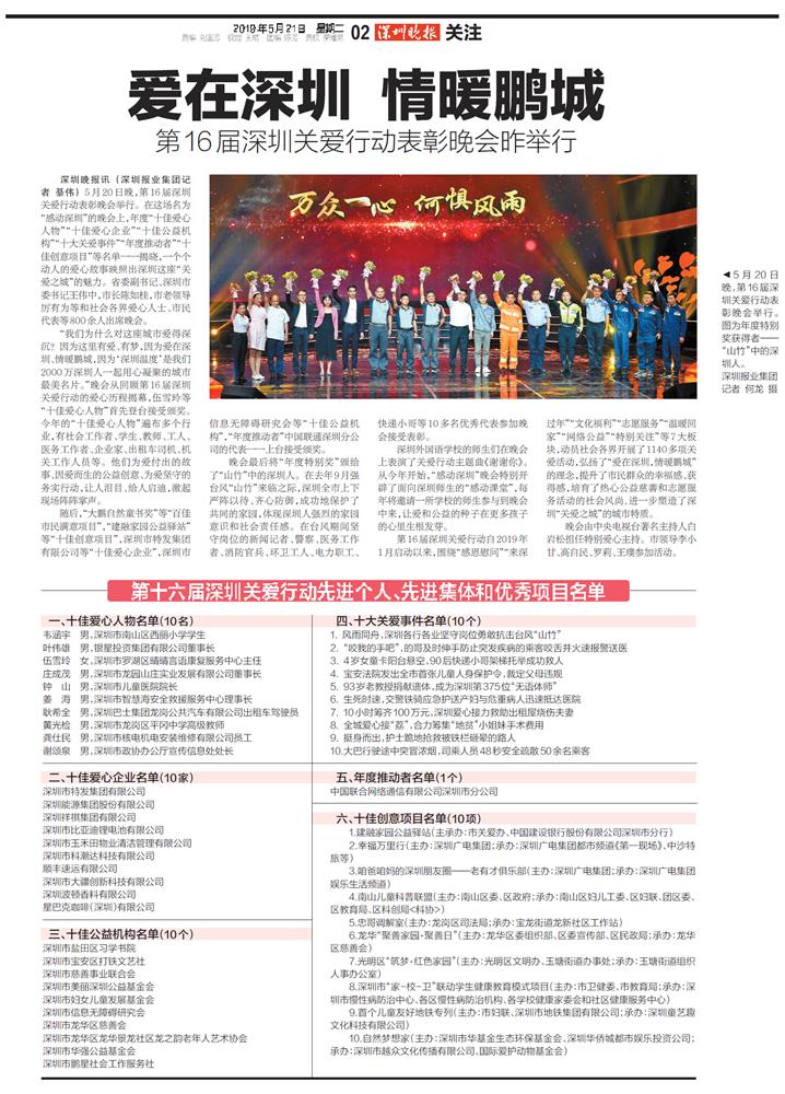 第十六届深圳关爱行动先进个人、先进集体和优秀项目名单