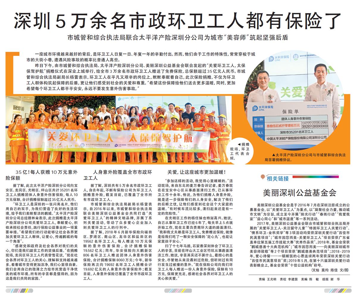 每人保10万 总保额超35亿 深35201名环卫工人获赠意外险