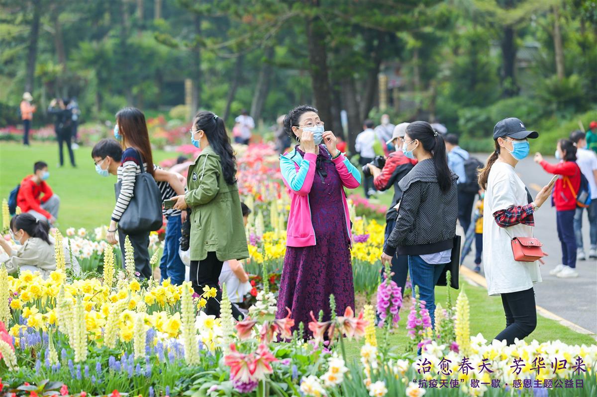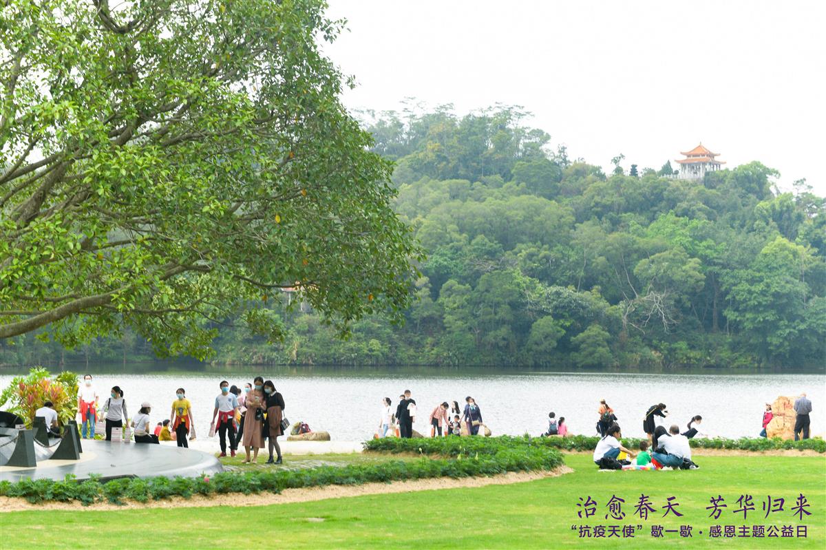 为致敬和感谢我市奋战在疫情防控斗争一线的专家和医护人员,在全市疫情防控形势持续向好之际,3月21-22日,深圳市城市管理和综合执法局、深圳市卫生健康委员会在仙湖植物园联合举办“治愈春天,芳华归来”感恩主题公益日活动。来自全市各医院的抗疫一线医务工作者代表前往仙湖植物园,在繁忙工作之余“歇一歇”,欣赏植物园优美的自然风光和丰富植物,在清幽静雅的环境中舒缓工作压力,聆听春之花语,共赏芳华美景。此次活动是仙湖植物园即将恢复开园之际,为医务工作者举办的专场活动。