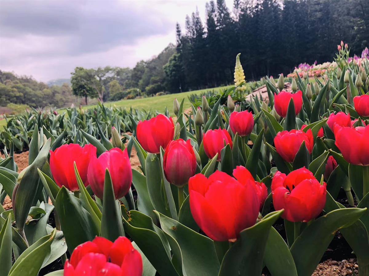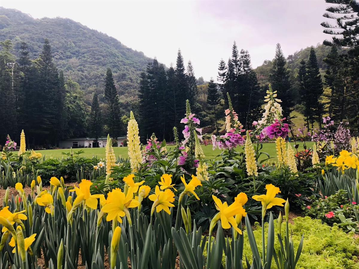 本次活动在天上人间大草坪创新性地使用了球宿根花卉进行花境布置,搭配鲁冰花(羽扇豆)、美国石竹、毛地黄、金鱼草、新几内亚凤仙、洋凤仙、大花海棠、桑蓓斯、矮牵牛、向日葵、旱金莲等草本花卉,营造春意绵绵、繁花似锦、清雅宜人的景观。其中,大部分球宿根花卉是第一次运用在我市各类花展布置中。据仙湖植物园专家介绍,球宿根花卉在深圳的自然气候条件下是没有办法种植开花的,往常,需要提前三个月左右,将其种植在盆里放入冷库进行低温春化从而诱导花芽分化和根系生长。这次在短短的半个月之内就完成了种植生长,正因为仙湖植物园专业的技术团队在背后的努力,大家才能在此刻欣赏到这一美景。