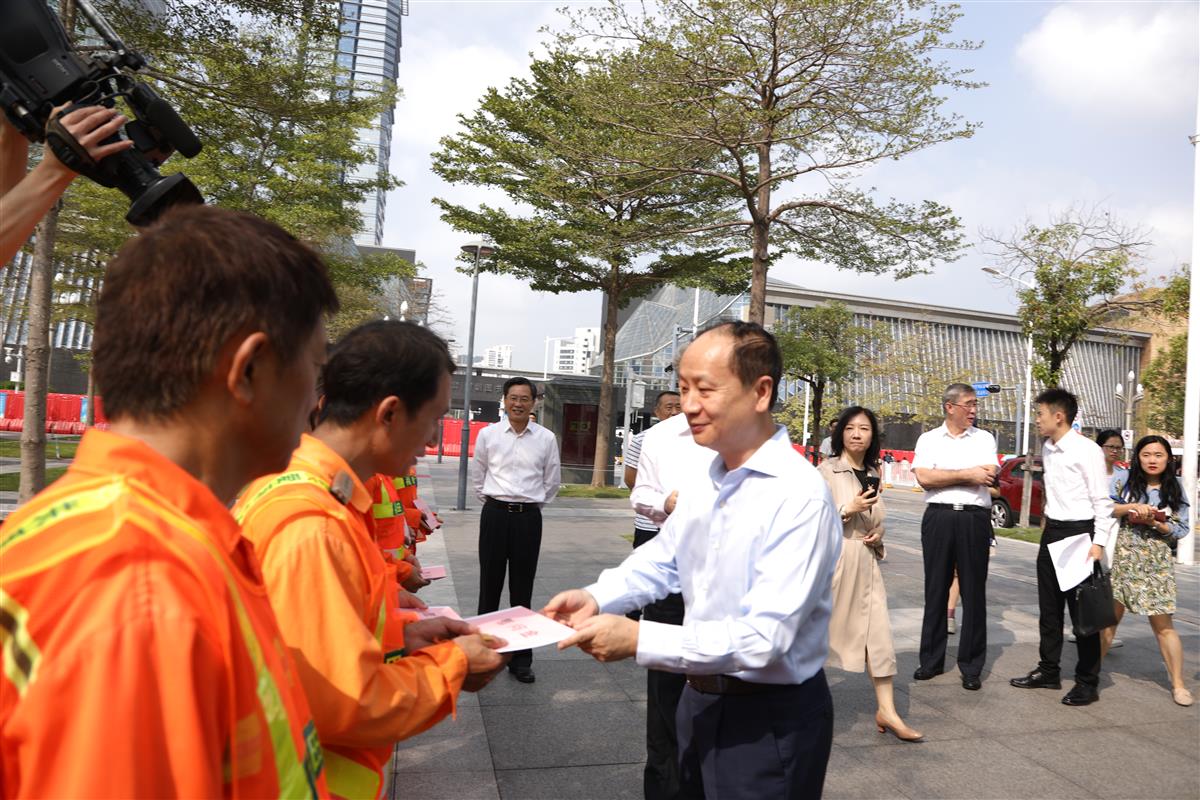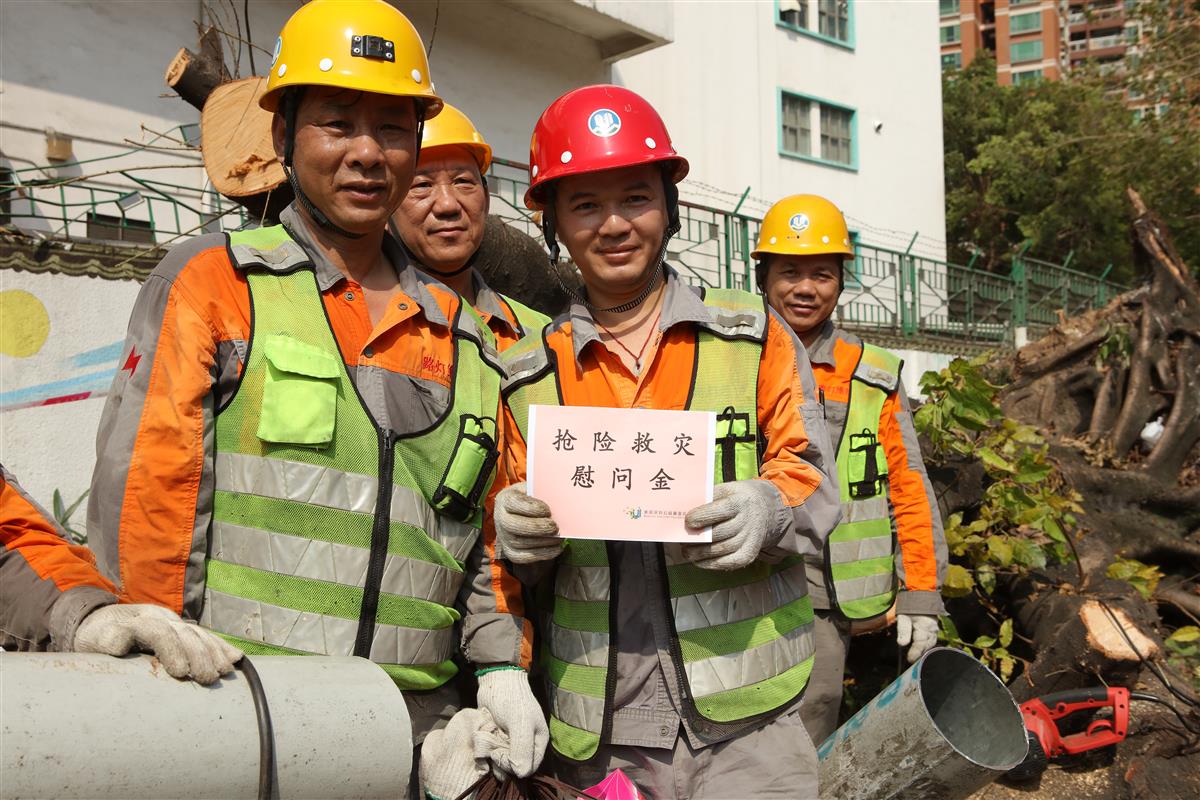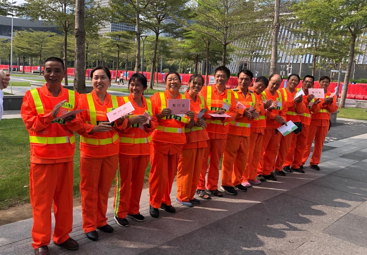 2018年,一场35年一遇的超强台风“山竹”,把美丽深圳扫荡得满目苍痍。在迎战台风“山竹”的紧要关头,我市一线环卫作业人员逆风而行,昼夜坚守在抢险救灾的第一线。基金会联合市城管和综合执法局慰问连续奋战在防御台风和抢险恢复第一线的公园、环卫、灯光、绿化和森林消防工作人员,感谢他们为灾后恢复重建工作付出的辛勤劳动。