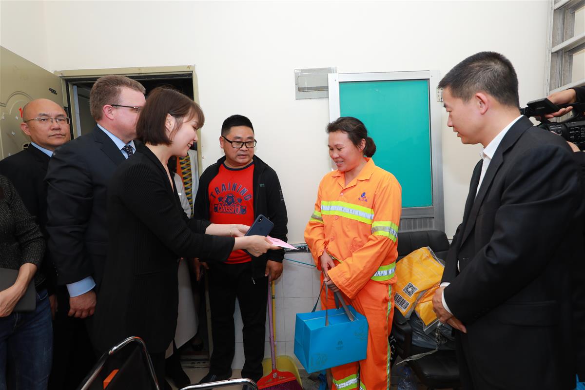 2020年1月13日,基金会联合鹏瑞启航公益基金会、深圳鹏瑞莱佛士酒店在人才公园共同举办“关爱城市美容师,共建美丽深圳”活动,为一线环卫工人送上新年的祝福及慰问年糕,让他们在忙碌的工作中也能感受到节日温暖的氛围。