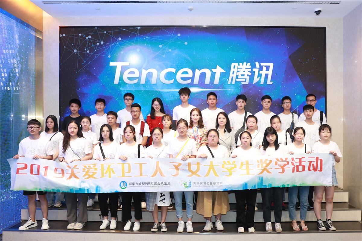 为减轻环卫工人家庭的教育负担,树立优秀环卫工人子女的良好榜样,基金会每年对我市当年考上大专及以上院校的一线环卫工人子女大学生发放奖学金,并邀请他们参观腾讯公司,游览景点,鼓励他们勤奋学习,树立自强不息的精神。目前,基金会已连续四季开展环卫工人子女大学生奖学活动,累计奖励471名环卫工人子女大学生,共计奖励236.4万元。