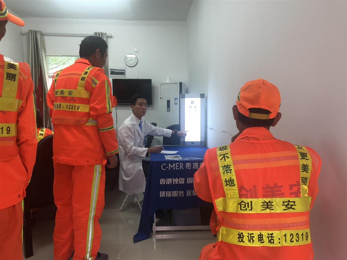 2018年以来,基金会联合深圳希玛林顺潮眼科医院开展了28场“关爱环卫工人义诊”活动,为我市罗湖区、福田区、宝安区、龙华区以及坪山区1100余名环卫工人及家属进行眼健康检查,其中12人接受了免费手术,累计减免近8万元医疗费用。通过义诊,让环卫工人重视眼健康问题,让眼部疾病早发现,早预防,早治疗。