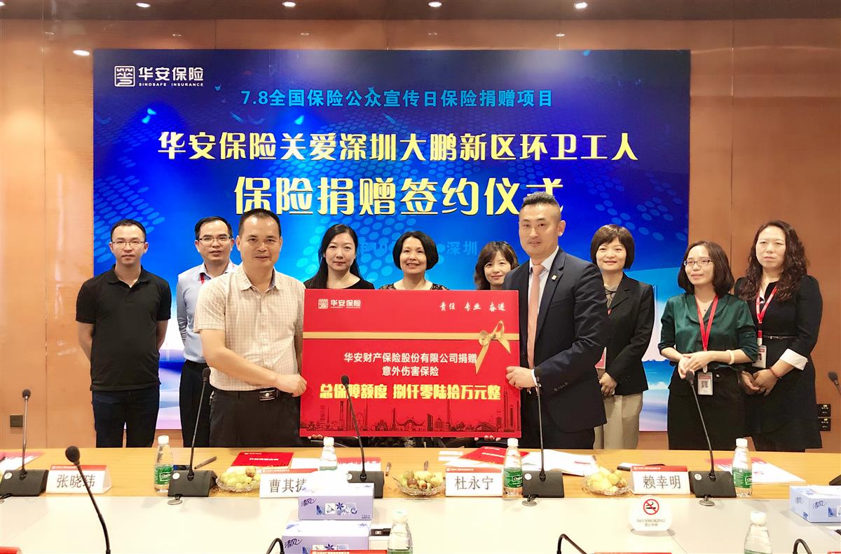 华安保险向大鹏新区806名一线环卫工人每人赠送团体人身意外险,合计保额8060万元。