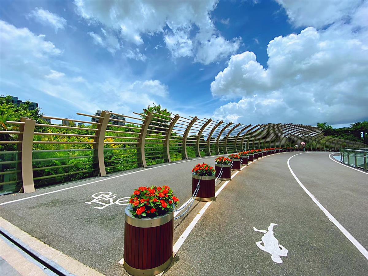 随后理事们一行来到大沙河生态长廊,沿着人行步道和河岸景观廊道行走,兴致勃勃参观了园内书吧和游客服务中心等。大沙河畔,碧波荡漾、风景如画,谈及这里发生的巨大的变化,理事们无不表示赞叹。王国宾局长告诉大家,近年来,我们紧紧围绕市委市政府“两打造一提升”的工作部署,特别是精心打造世界著名花城品牌,建成了一大批高品质的公园,南山区大沙河生态长廊作为新晋“网红公园”就是其中一个代表。接下来,我们还将持续开展城市环境品质提升,加快建设“公园里的深圳”,希望各位理事继续积极支持和参与城市管理工作,我们将与美丽深圳公益基金会紧密携手,共同打造关爱环卫工人品牌,营造更加宜居宜业宜游的城市环境,让深圳这座城市更有温度更美好。