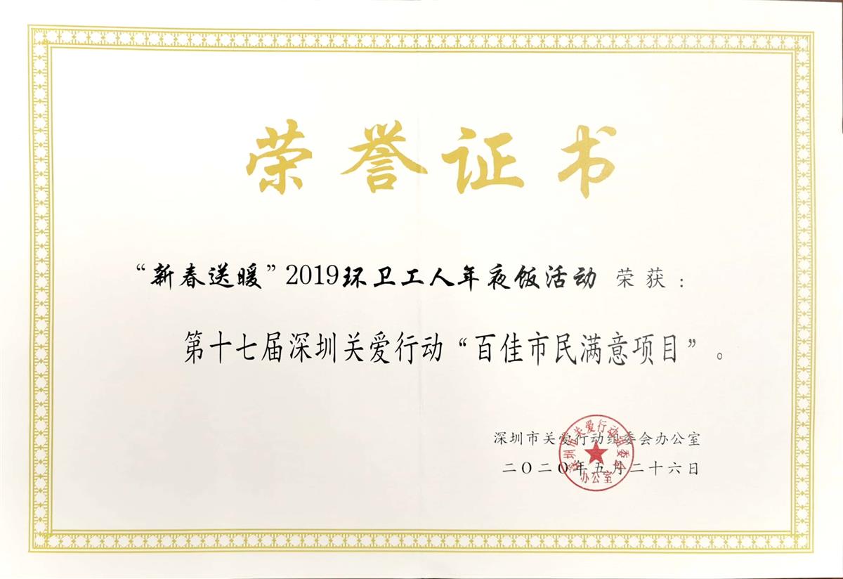 荣获第十七届深圳关爱行动“百佳市民满意项目”
