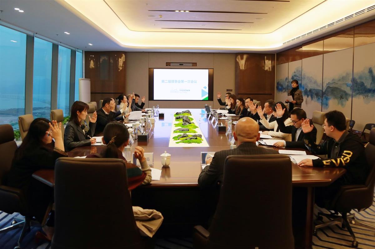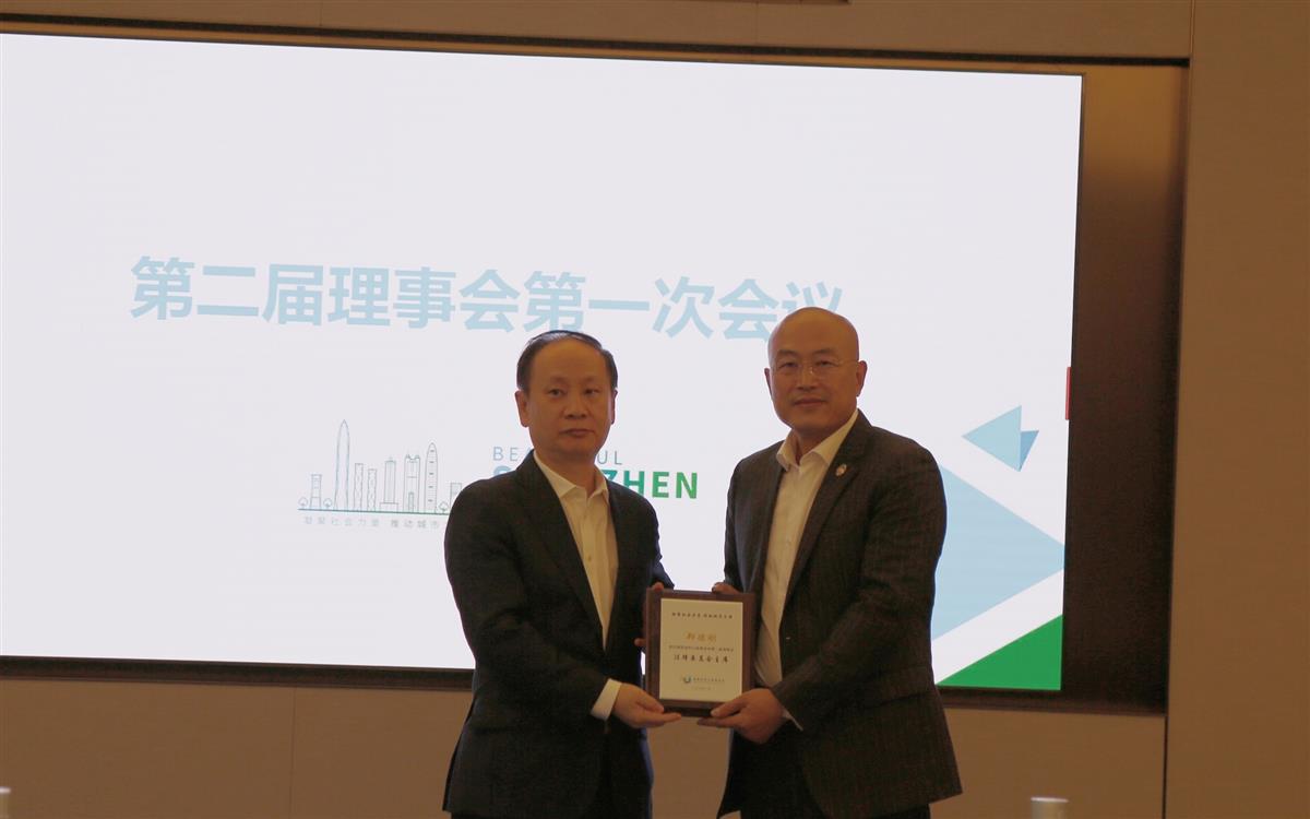 第一届理事会第十三次会议结束后随即召开了第二届理事会第一次会议。会议选举鹏瑞集团董事局主席徐航为理事长;选举深能环保董事长李倬舸、玉禾田集团董事长周平、奥特迅公司董事长萧霞、腾讯公司副总裁沈丹、一体集团董事长刘丹宁、迈睿迈特公司董事长张静波为副理事长;选举张晓玮为执行副理事长兼任秘书长;选举洁亚环保公司总经理朱晓芬、绿景地产公司董事局主席黄敬舒、招行深圳分行工会副主席万里响、深高速环境公司董事长高江平、百佳华集团总裁庄小雄、东江环保公司总经理罗宇、信义房地产公司经理李玉泉为理事;选举北京德恒(深圳)律师事务所主任于秀峰为监事。