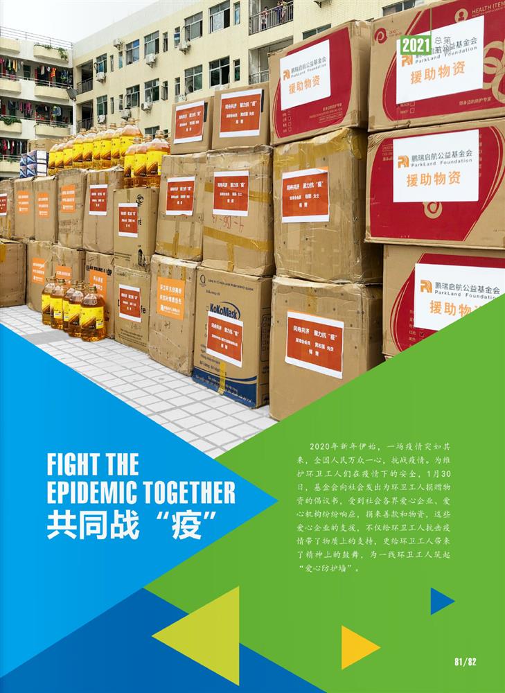 2020年新年伊始,一场疫情突如其来,全国人民万众一心,抗战疫情。为维护环卫工人们在疫情下的安全,1月30日,基金会向社会发出为环卫工人捐赠物资的倡议书,受到社会各界爱心企业、爱心机构纷纷响应,捐来善款和物资,这些爱心企业的支援,不仅给环卫工人抗击疫情带了物质上的支持,更给环卫工人带来了精神上的鼓舞,为一线环卫工人筑起“爱心防护墙”。