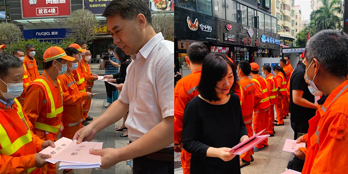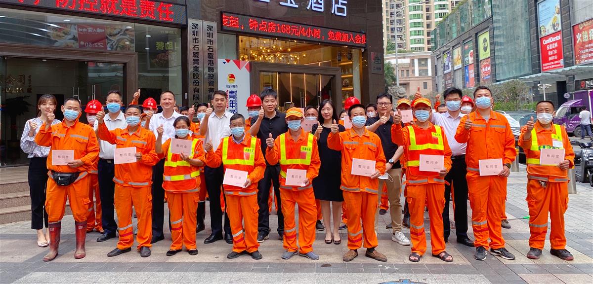 4月29日,市城管和综合执法局联合基金会在石厦村开展五一慰问活动,基金会出资慰问福保街道优秀环卫作业班组。市环境卫生管理处四级调研员魏镇辉,福田区福保街道办事处主任刘光银、福保街道执法队负责人谢富荣,美丽深圳公益基金会执行副理事长、秘书长张晓玮参加了活动,为50名环卫工人送上节日慰问金。