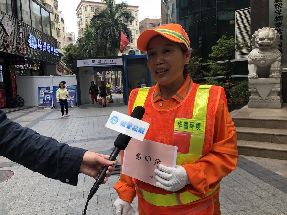 “非常感谢!”环卫工人李锦婷拿着慰问金激动的说:“我感到很温暖,我也会更加努力,认真把工作做好,为深圳的洁净贡献自己的一份力量。”