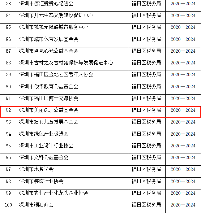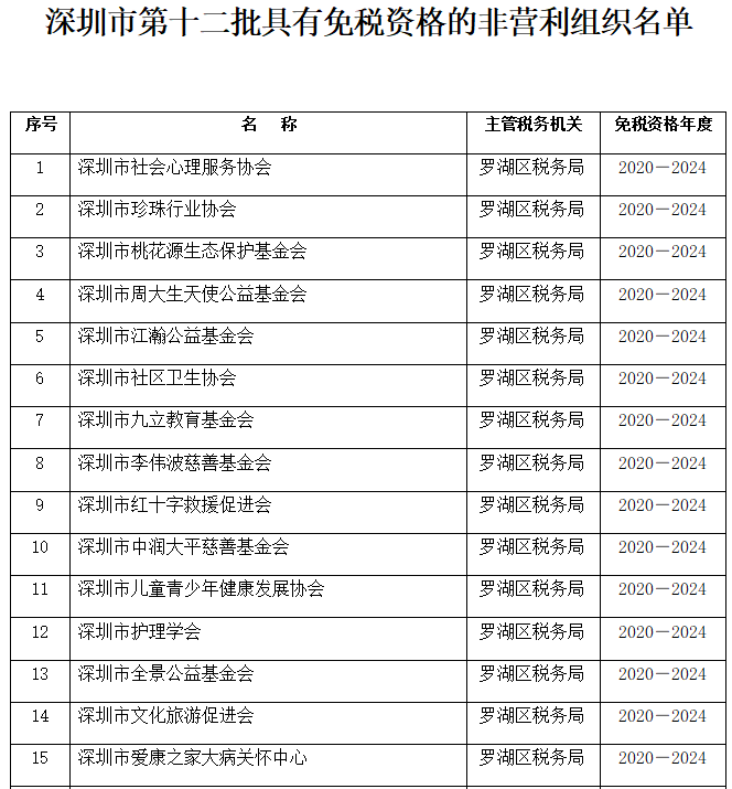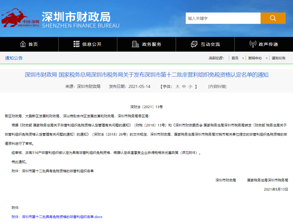 5月13日,深圳市财政局、国家税务总局深圳市税务局联合发布了《深圳市第十二批非营利组织免税资格认定名单的通知》(深财法【2021】13号),根据通知内容,深圳市美丽深圳公益基金会取得了非营利组织免税资格,免税资格有效期为2020年至2024年。