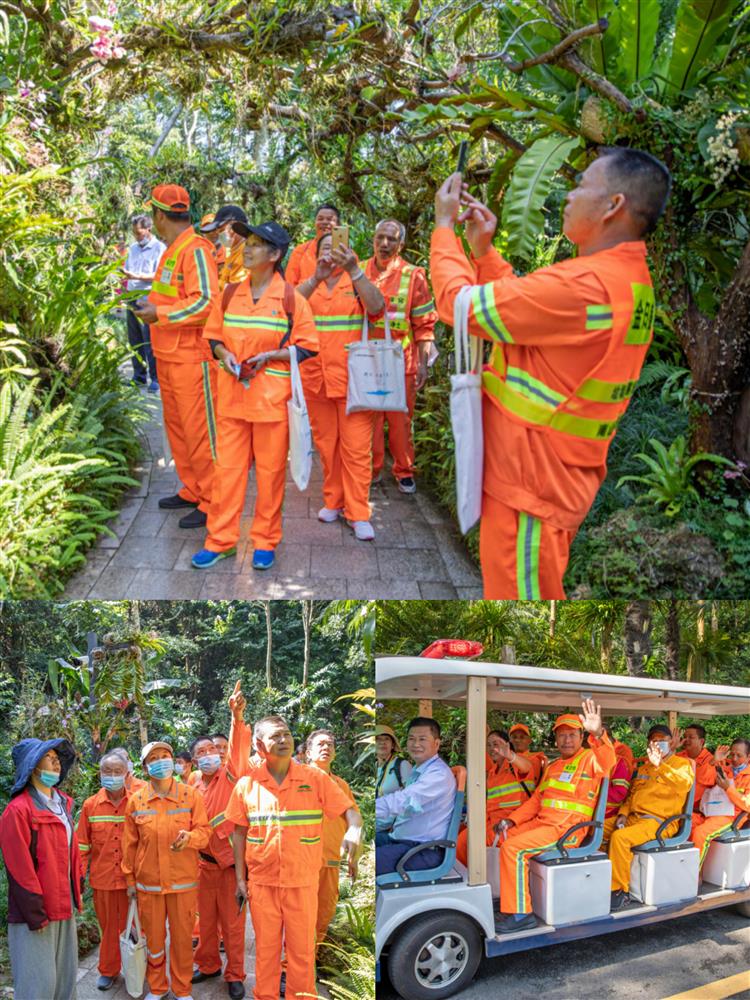 带领环卫工人参观游览仙湖植物园。