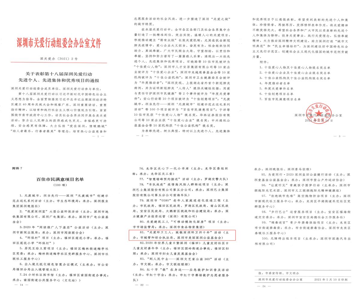 “关爱环卫工人,致敬深圳环卫四十年”项目