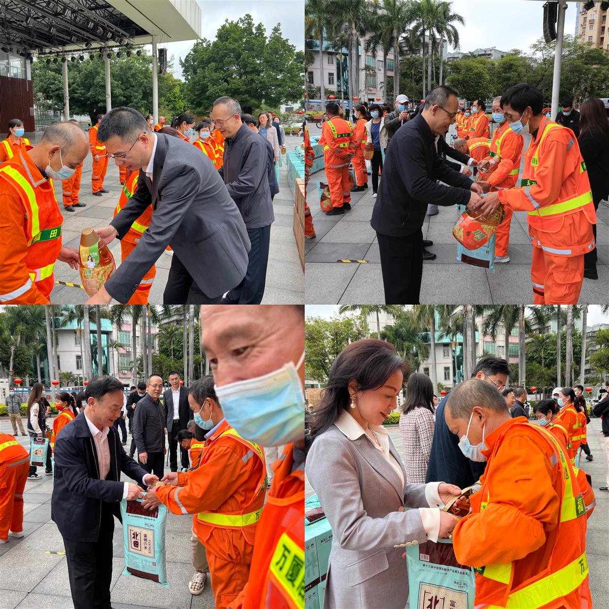 市总工会党组成员、一级调研员黄金玲表示,环卫工人为广大市民创造了整洁、卫生的工作生活环境,也赢得了全社会的广泛赞誉,无愧于“城市美容师”的称号。今年,市总工会向全市春节期间坚守疫情防控一线、提供民生保障服务的500名环卫工人每人发放价值400元慰问年货礼包,美丽深圳公益基金会副理事长单位、迈睿环境公司向福田区140名一线环卫工人每人发放价值300元慰问粮油。