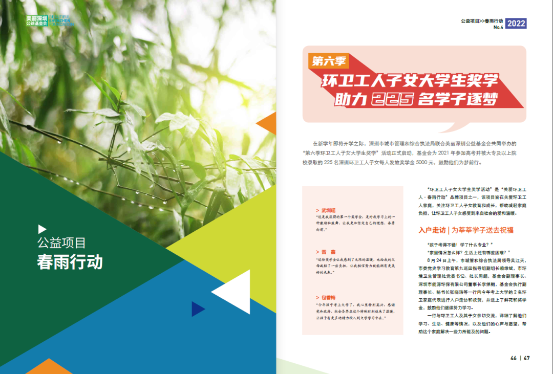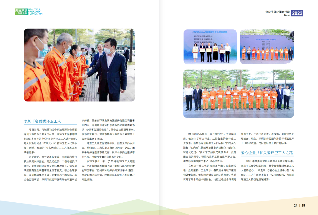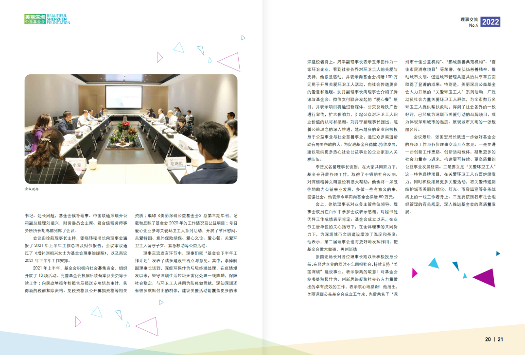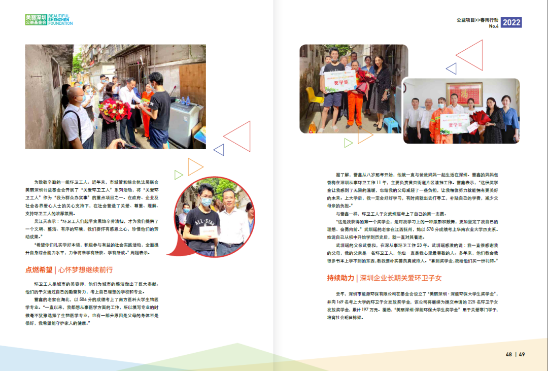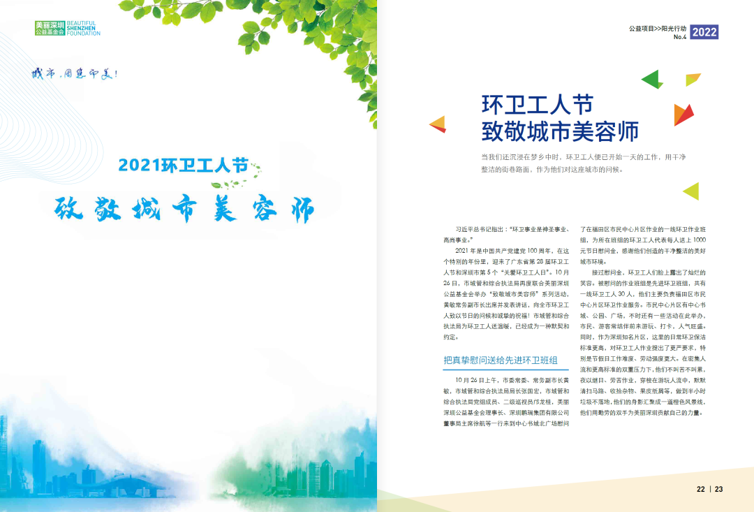 《美丽深圳公益基金会》总第四期年报已出刊,记载和反映了基金会2021年的工作情况和公益项目。感谢社会各界对关爱环卫工人项目的支持和参与。如有需求,请与秘书处联系。欢迎关注!