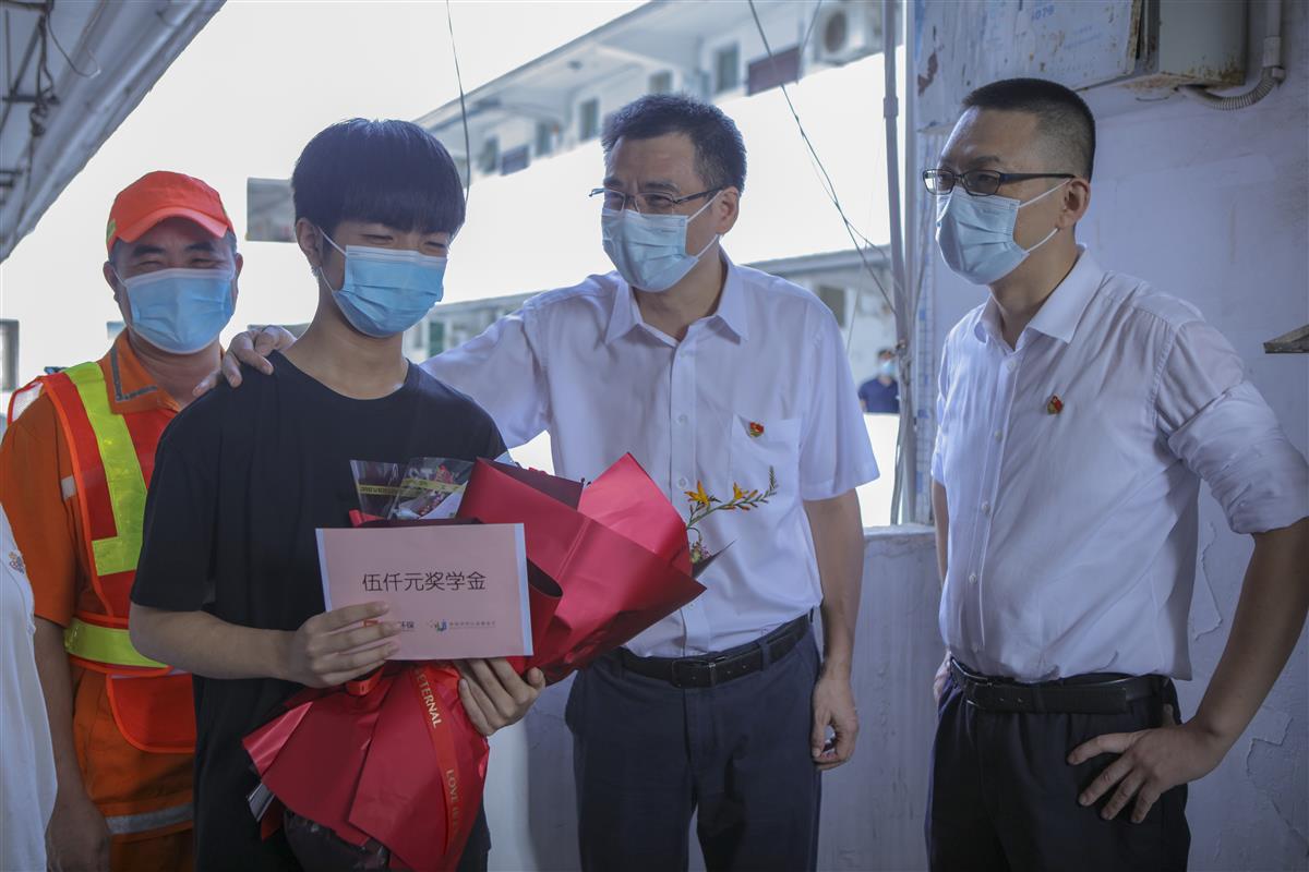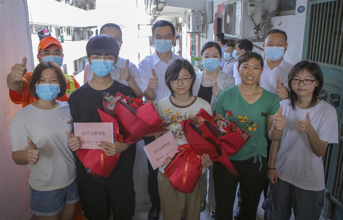 8月23日上午,深圳市城市管理和综合执法局副局长黄立新,深圳市福田区副区长冯瑞,深圳市环境卫生管理处副处长徐晓帆,美丽深圳公益基金会执行副理事长、秘书长张晓玮,基金会理事单位、深圳能源环保股份有限公司党委副书记方木山等一行向今年考上大学的2名环卫家庭代表进行入户走访和祝贺,并送上了鲜花和奖学金。