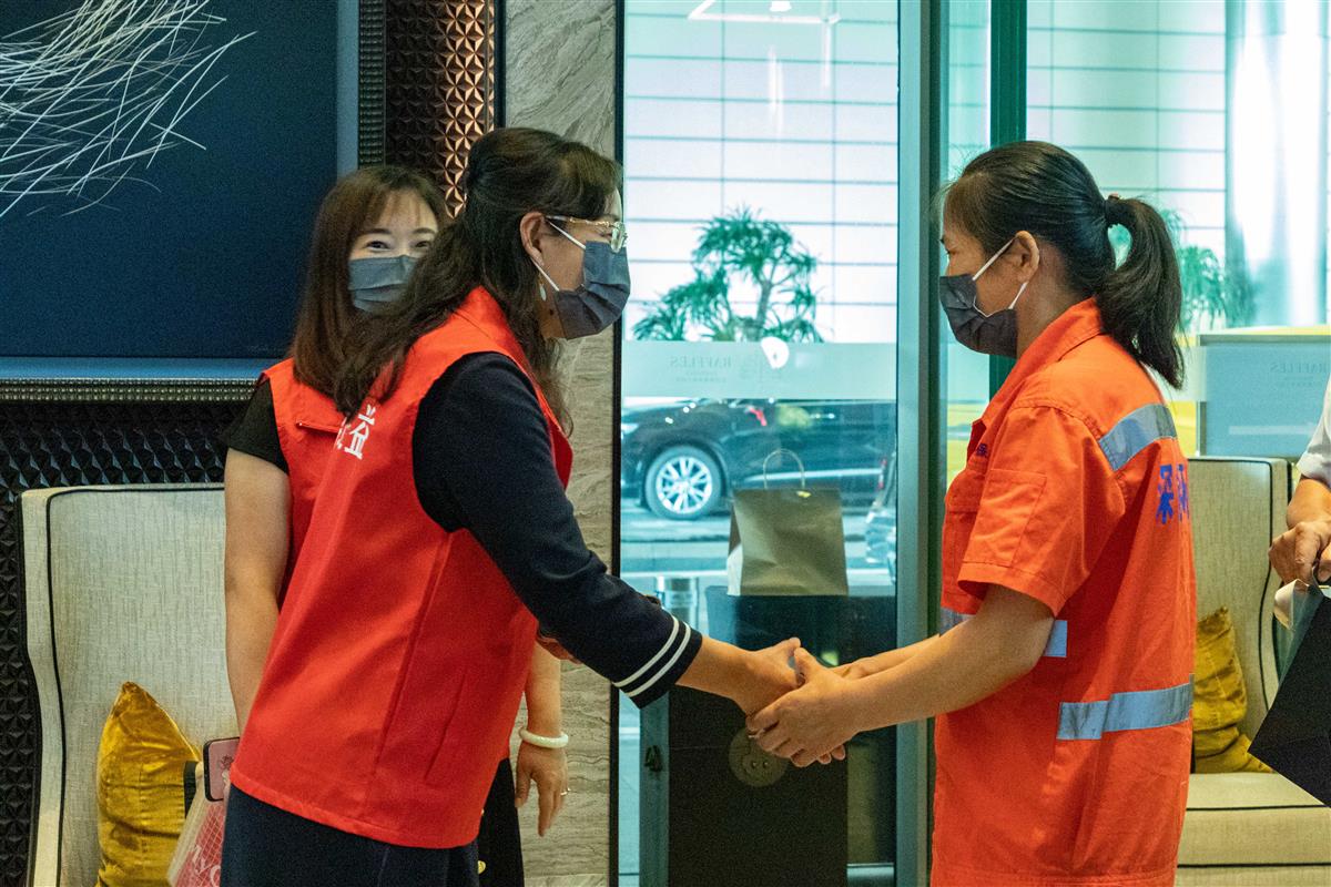 疫情当前,环卫工人逆行而上、冲锋在前,日夜奋战在大街小巷,清扫街道、清运垃圾,确保垃圾日产日清。值此中秋佳节来临之际,为感谢环卫工人对城市防疫工作的辛勤付出,9月8日,美丽深圳公益基金会携手深圳鹏瑞莱佛士酒店、深圳鹏瑞公益基金会,以爱心颂月礼盒,共迎佳节中秋,向100名南山区环卫工人代表送上衷心的佳节问候。