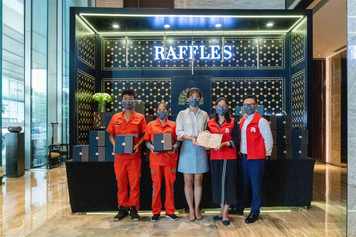鹏瑞莱佛士酒店总经理黄礼邦表示,在2019年5月的开业典礼上,莱佛士酒店携手鹏瑞公益基金会、美丽深圳公益基金会共同举办首场慈善拍卖活动,并将现场筹得的316万元人民币善款全数捐赠至美丽深圳公益基金会,用于支持与关爱环卫工人。酒店非常荣幸能成为公益事业的一份子,将竭尽所能,持续传承公益之举,作为莱佛士承担企业社会责任及传承公益精神的一部分,为建设美好社区贡献一份力量。