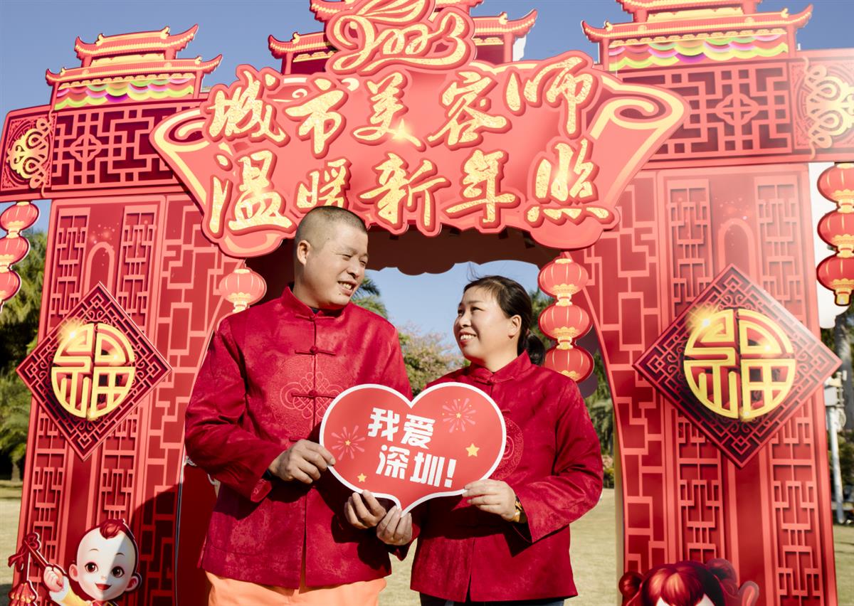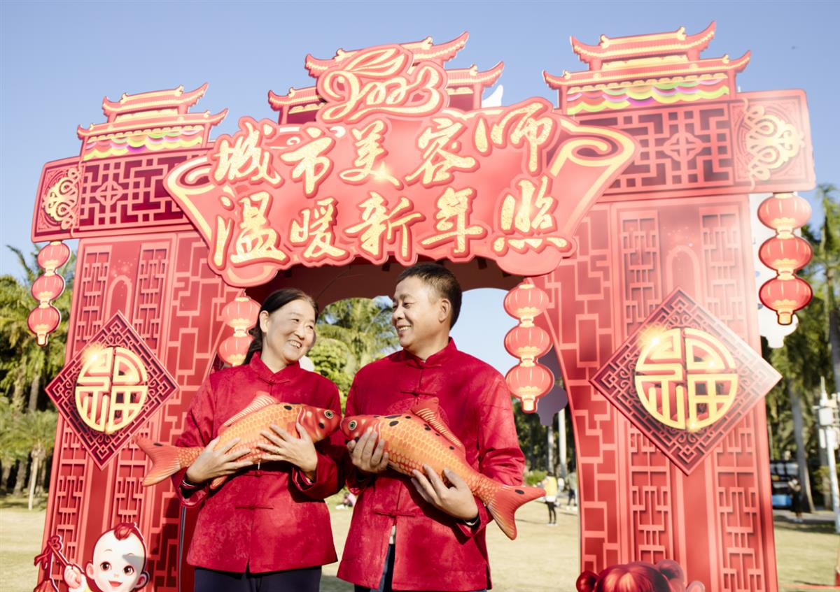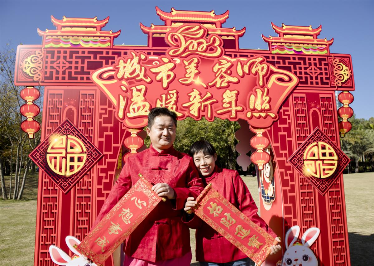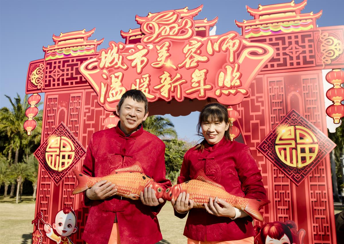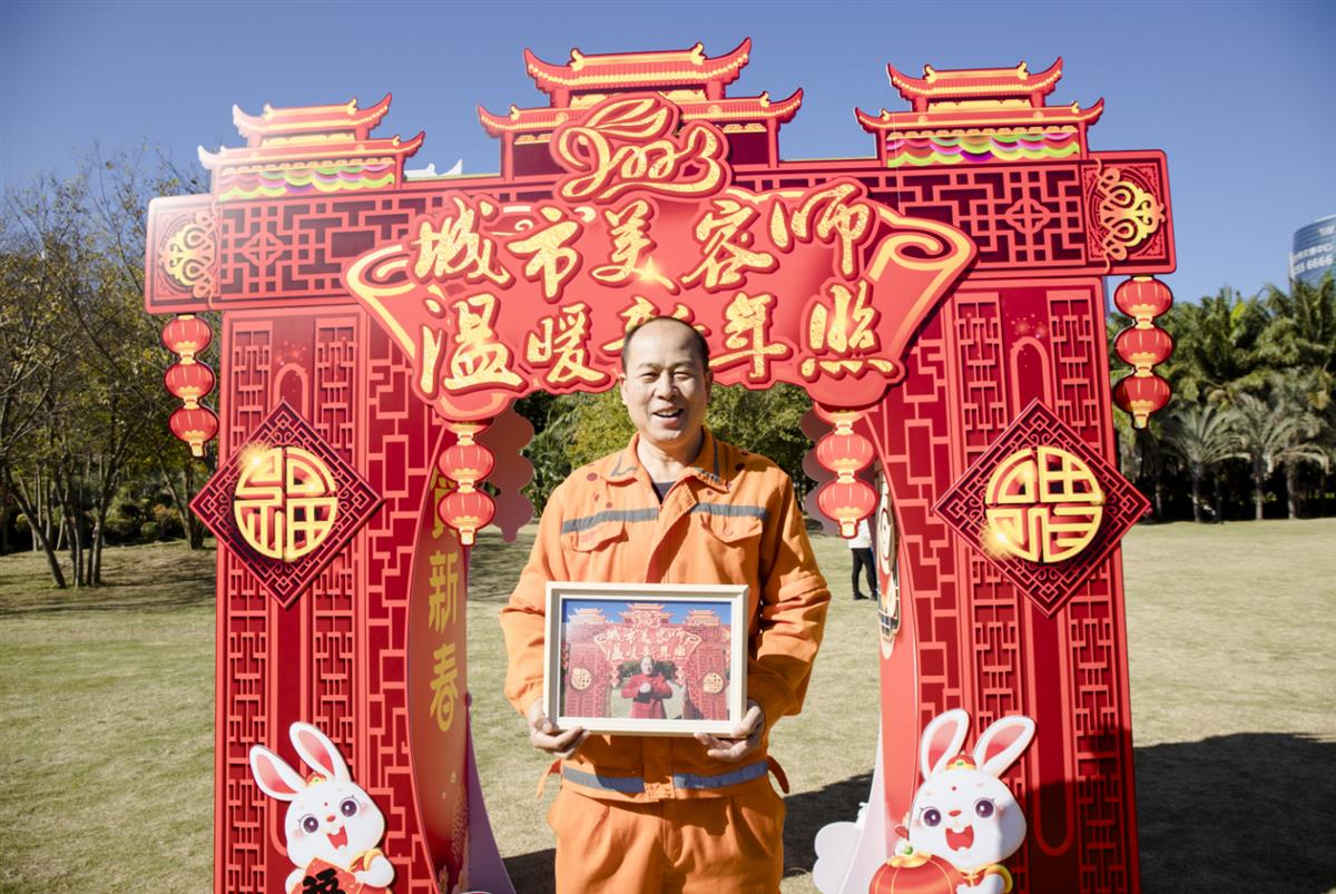 咔嚓!随着快门声响起,一张张幸福的笑脸被定格。活动现场,环卫工人换上喜庆唐装,陆陆续续前来拍照,有单人照、有甜蜜恩爱的环卫夫妻、有幸福环卫家庭……环卫工人们热情高涨,摆好姿势,保持微笑等待摄影师定格温馨瞬间。“相片拍的很好!我们夫妻俩平时很少拍,很难得有这样的机会,太感谢了!因为疫情,好几年也没回家了,这照片刚好可以寄给家里老人和孩子们看看。”环卫工人徐大哥高兴的说。