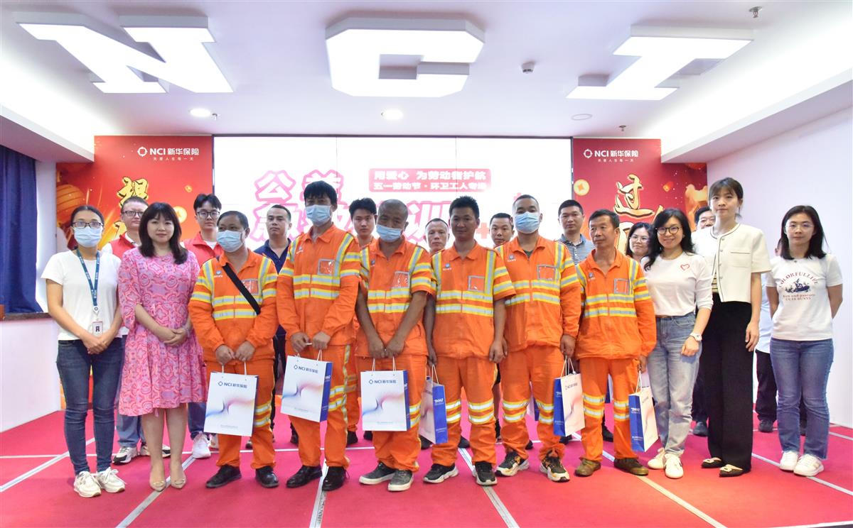 培训结束后,新华保险深圳分公司办公室主要负责人宋蕾及美丽深圳公益基金会副秘书长常青一同为现场的环卫工人送上节日爱心物资,表达对劳动者的敬意与关爱。