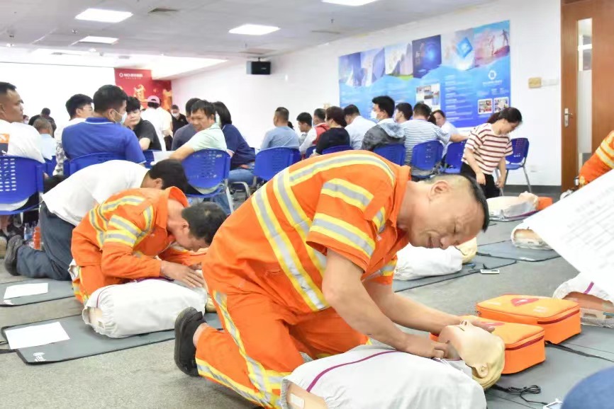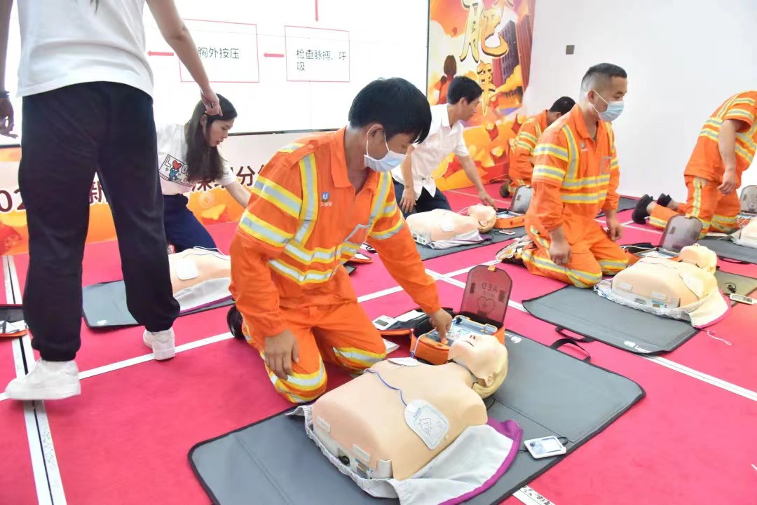 为提高环卫工人在工作生活中的自救互救能力,提升应对突发事件和意外伤害事故的紧急救护能力,4月28日,在“五一”劳动节即将来临之际,本着“人人学急救,急救为人人”的精神,美丽深圳公益基金会联合新华保险深圳分公司、大地保险深圳分公司、中再寿险深圳分公司,举办环卫工人急救培训公益活动。