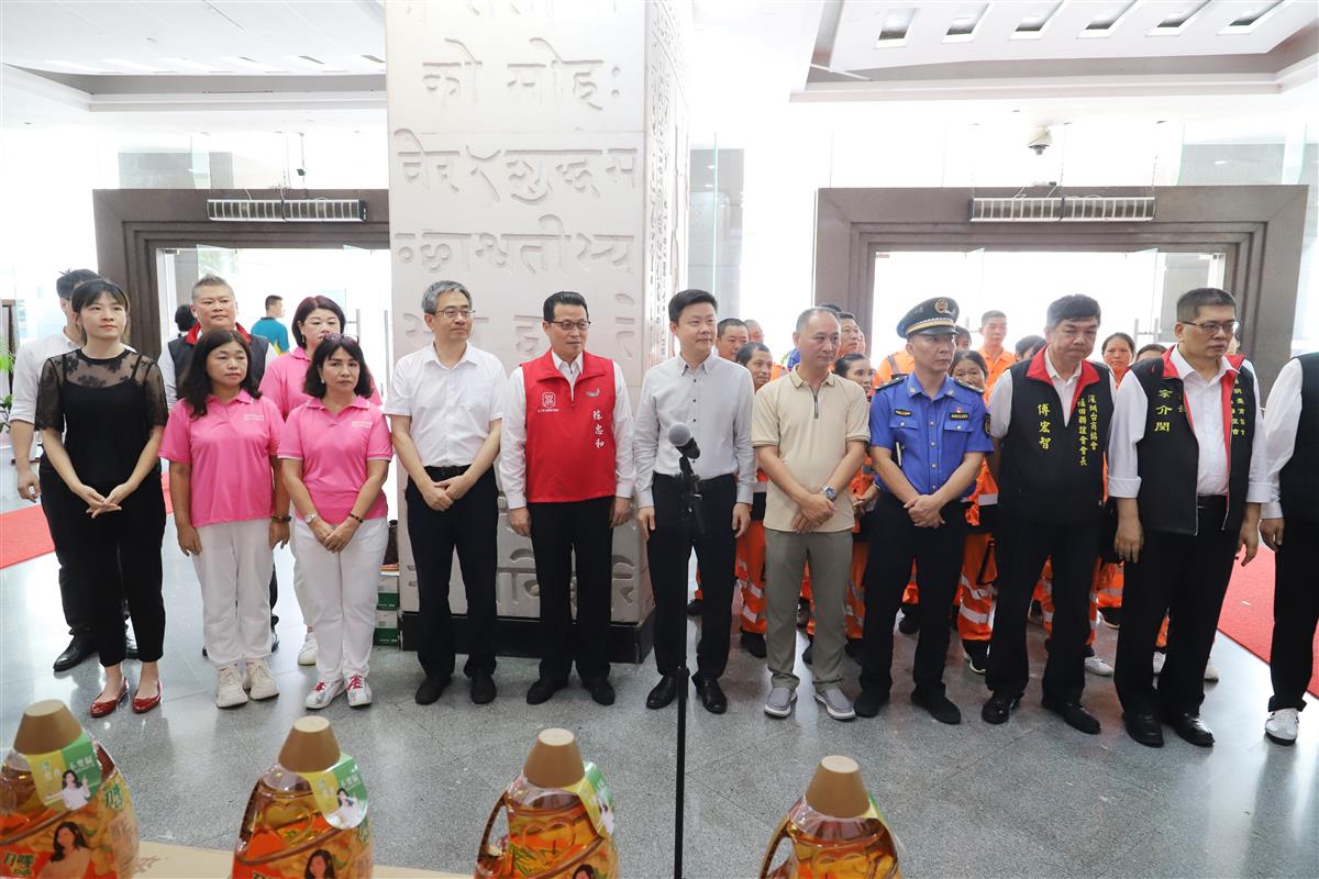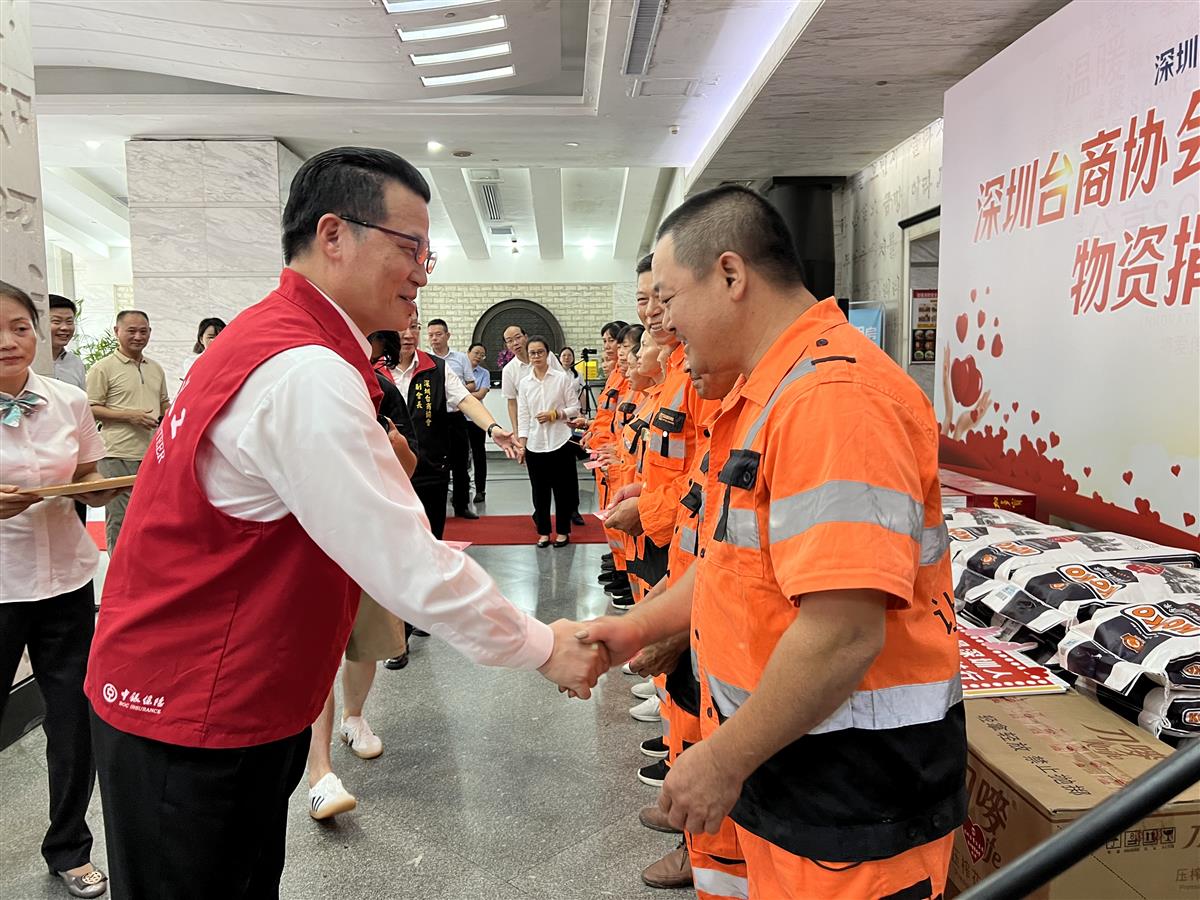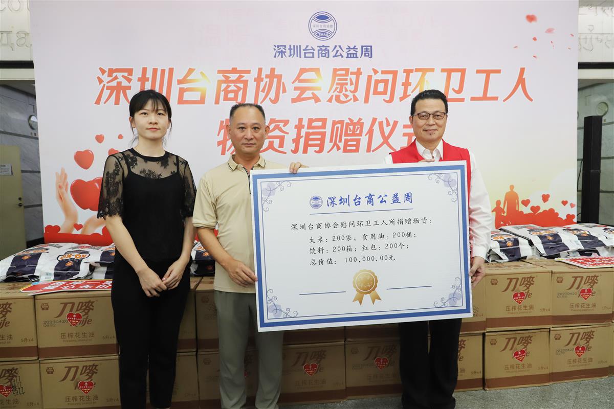 6月30日,深圳台商协会在国际文化大厦一楼举办了慰问环卫工人物资捐赠活动,给环卫工人送上了红包及米、油、饮料等生活物资。