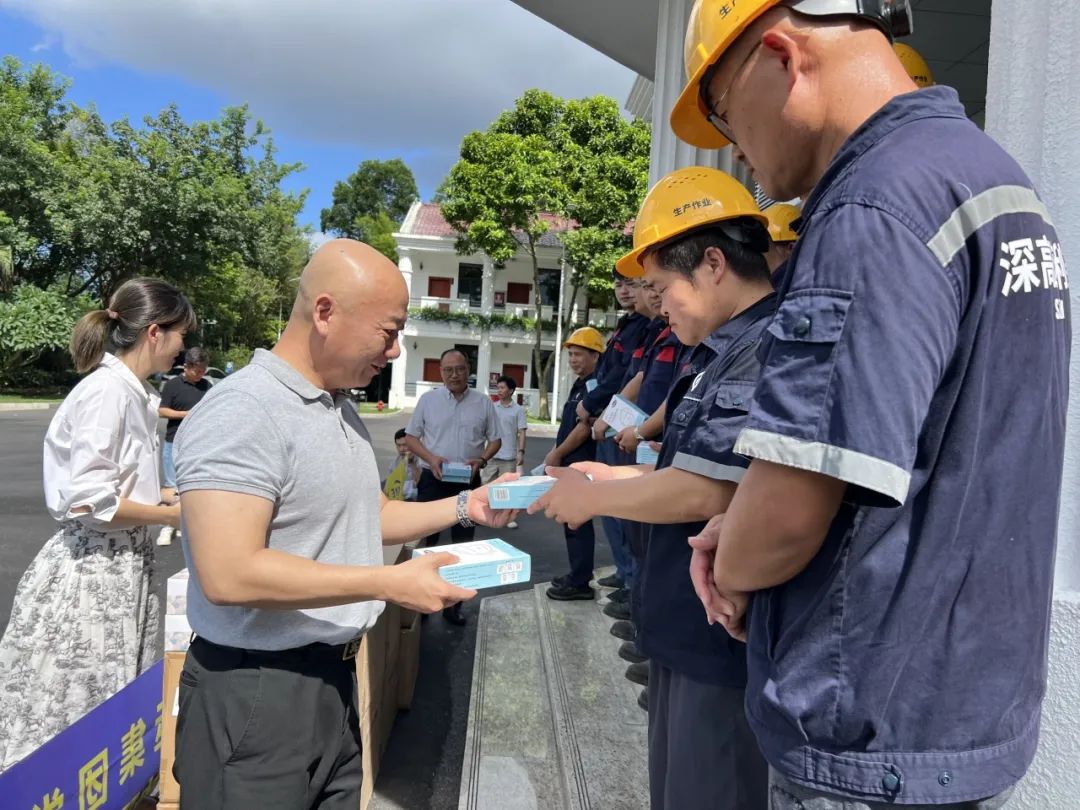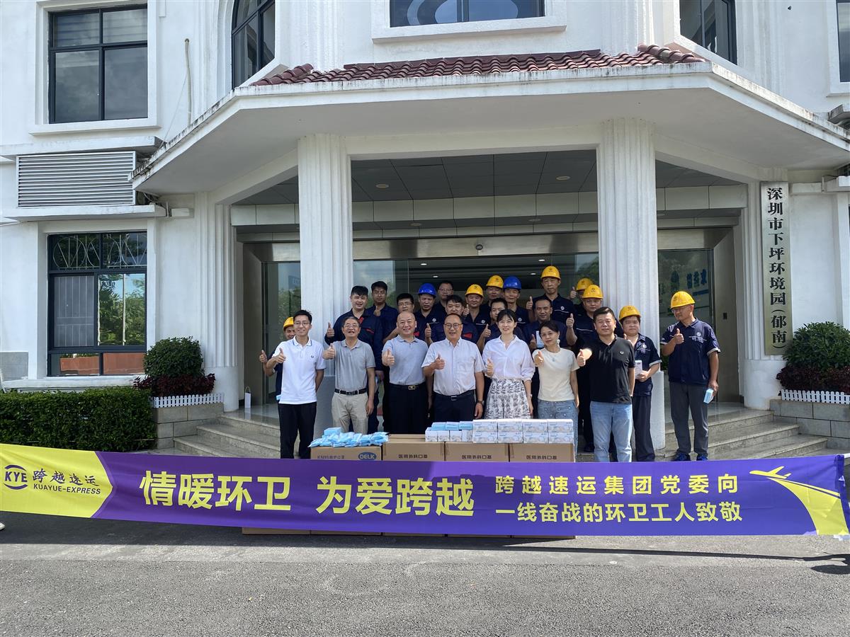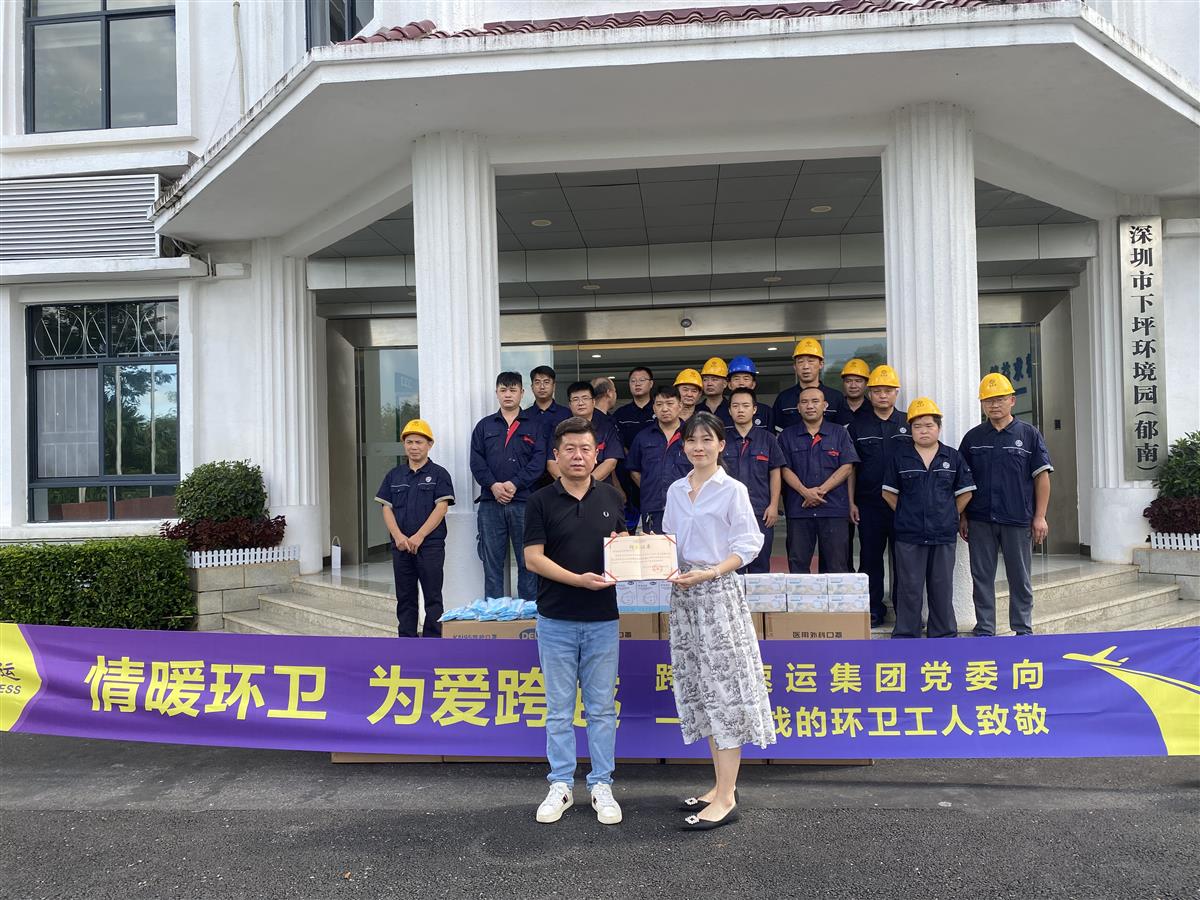 7月24日下午,深圳市下坪环境园副主任肖雄、美丽深圳公益基金会副秘书长常青、跨越速运集团副总裁马越、集团党委书记宋延兵一行在深圳市下坪环境园慰问了一线环卫工人代表。跨越速运集团党委通过基金会向深圳环卫工人捐赠价值11万余元的健康防护物资,为环卫工人群体提供必要的卫生保障,让他们更安心地工作。