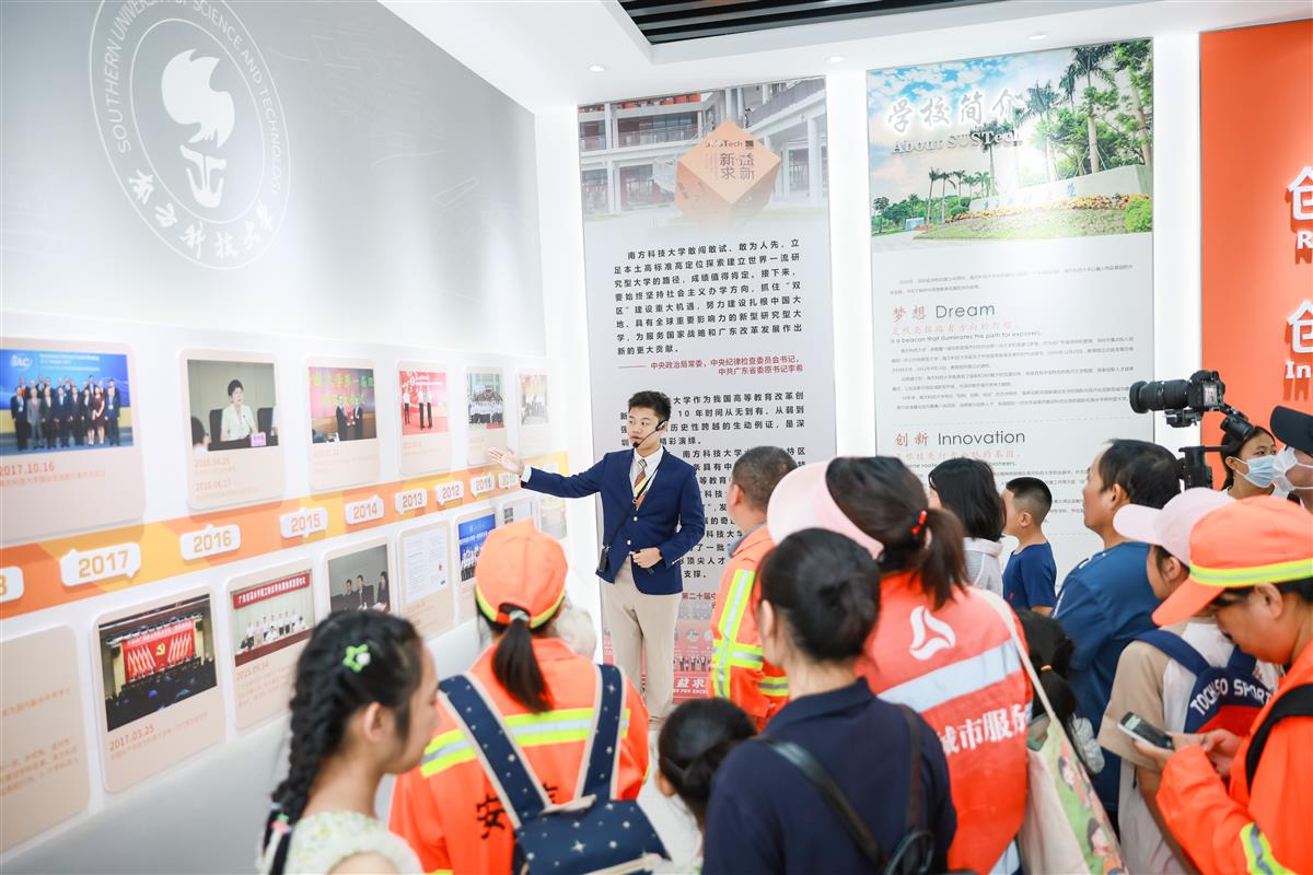 活动上,36组环卫家庭走进南方科技大学感受校园文化,先后参观了校园成果展厅和公共教学楼,对南科大建校以来的奋斗历程和成就、办学理念有了初步的认识。