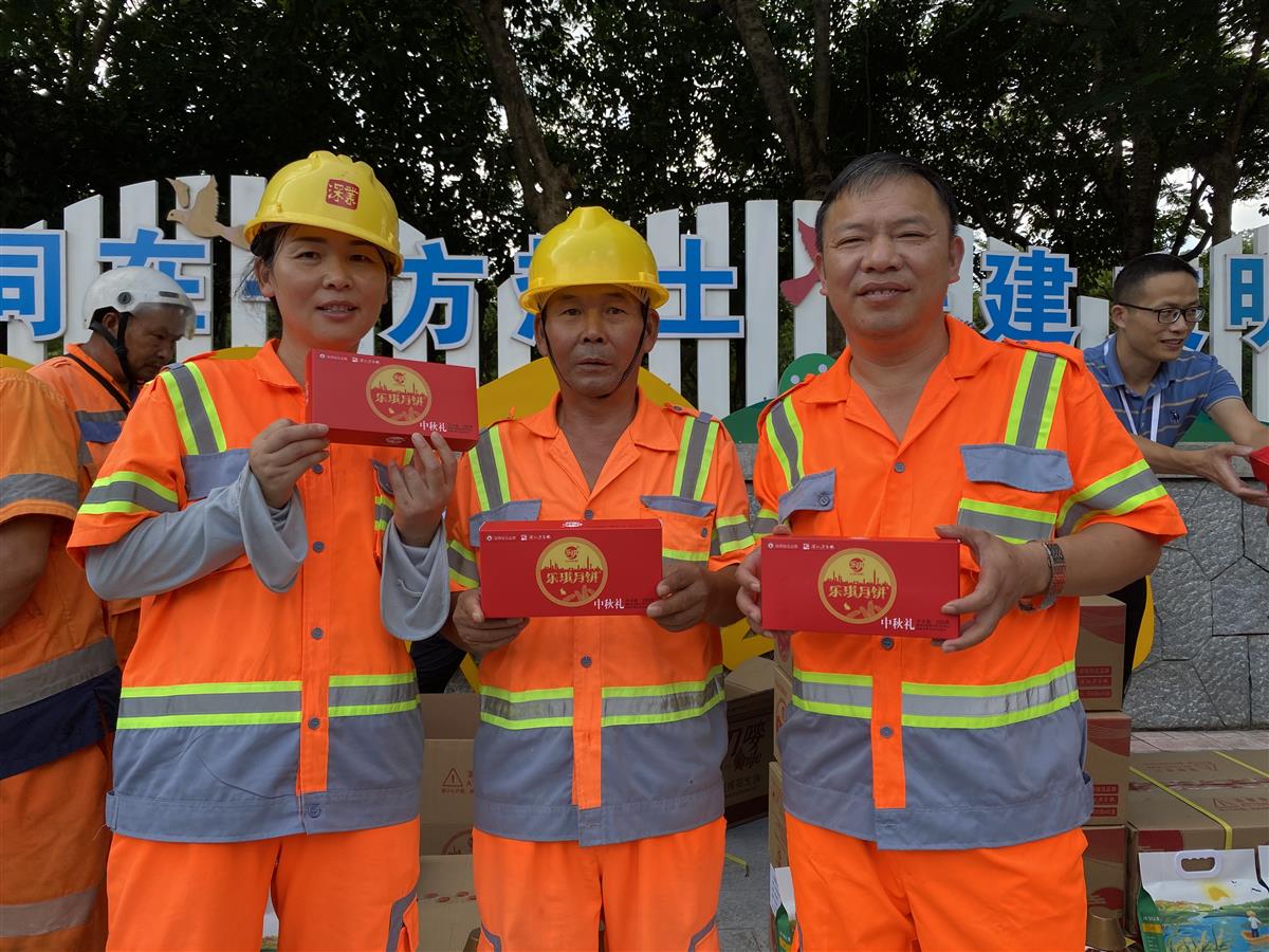 9月27日,美丽深圳公益基金会联合龙岗区城管和综合执法局、乐琪实业发展有限公司为龙岗环卫工人送上2000份慰问月饼,并送上美好祝愿。龙岗区城管和综合执法局副局长吕俊刚、乐琪公司总经理李斯芝、美丽深圳公益基金会项目部部长李剑辉,以及乐琪公益团队参加了活动。