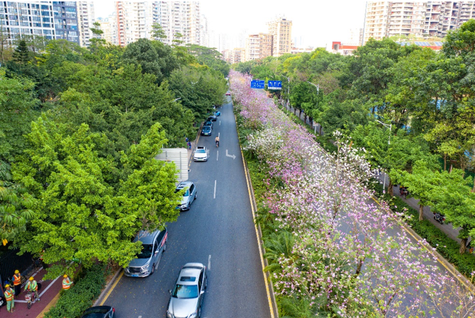 为进一步推进城市绿化美化,提升景观品质,深圳市城管和综合执法局将统筹组织各区各部门,在公园重要门户节点、城市主干道、门户道路、重要通道等周边绿地,结合现有树种增种观花乔灌木,成片栽植,形成规模,着力打造绿化特色景观和赏花胜地。